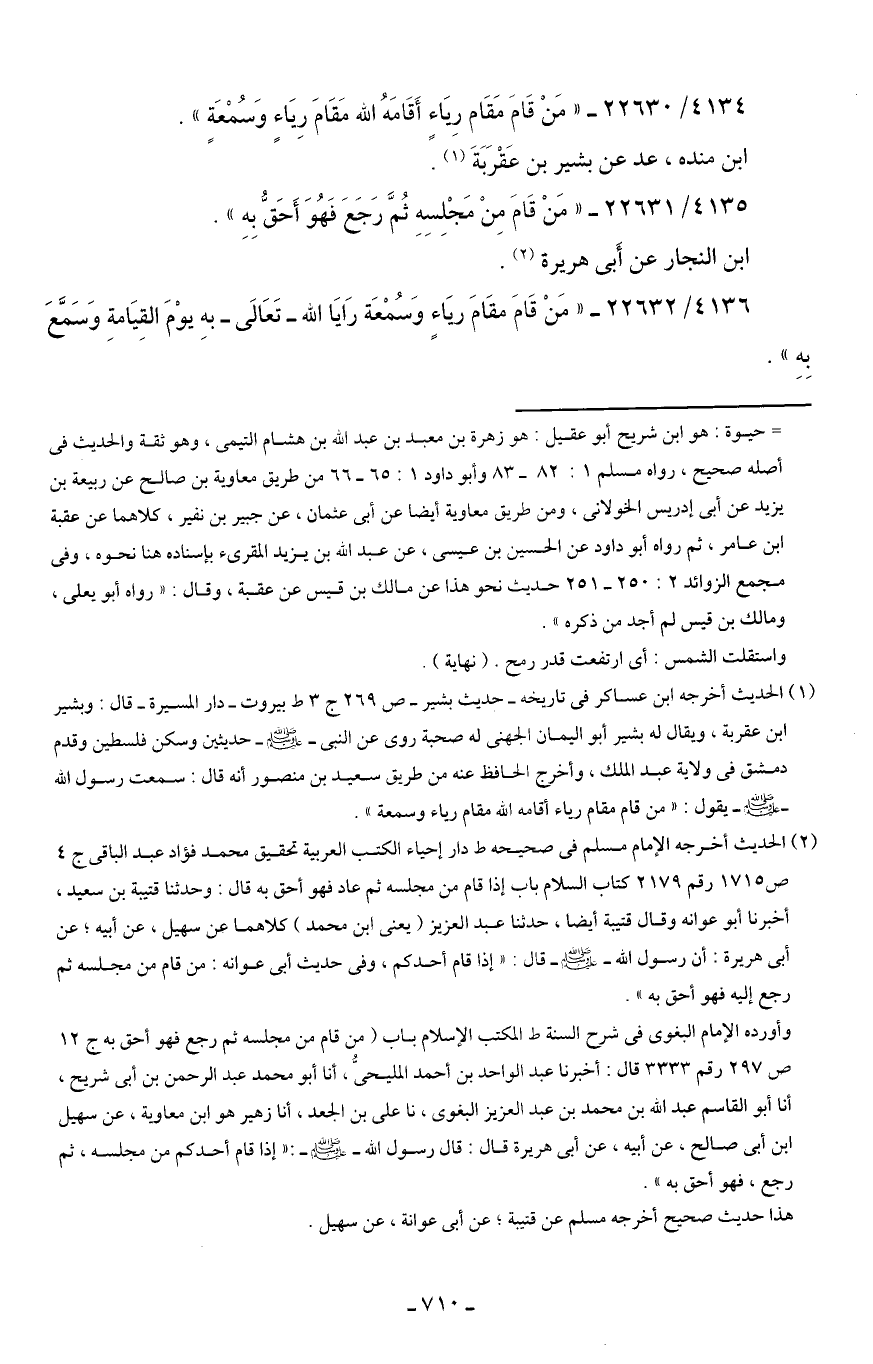 4135/ 22631 - "مَنْ قَامَ مِنْ مَجْلِسِهِ ثُمَّ رَجعَ فَهُوَ أَحَقُّ بِهِ".