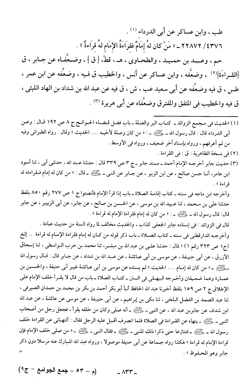 4376/ 22872 - "مَنْ كان لهُ إِمَامٌ فقِرَاءَةُ الإِمَامِ لهُ قِرَاءةٌ".