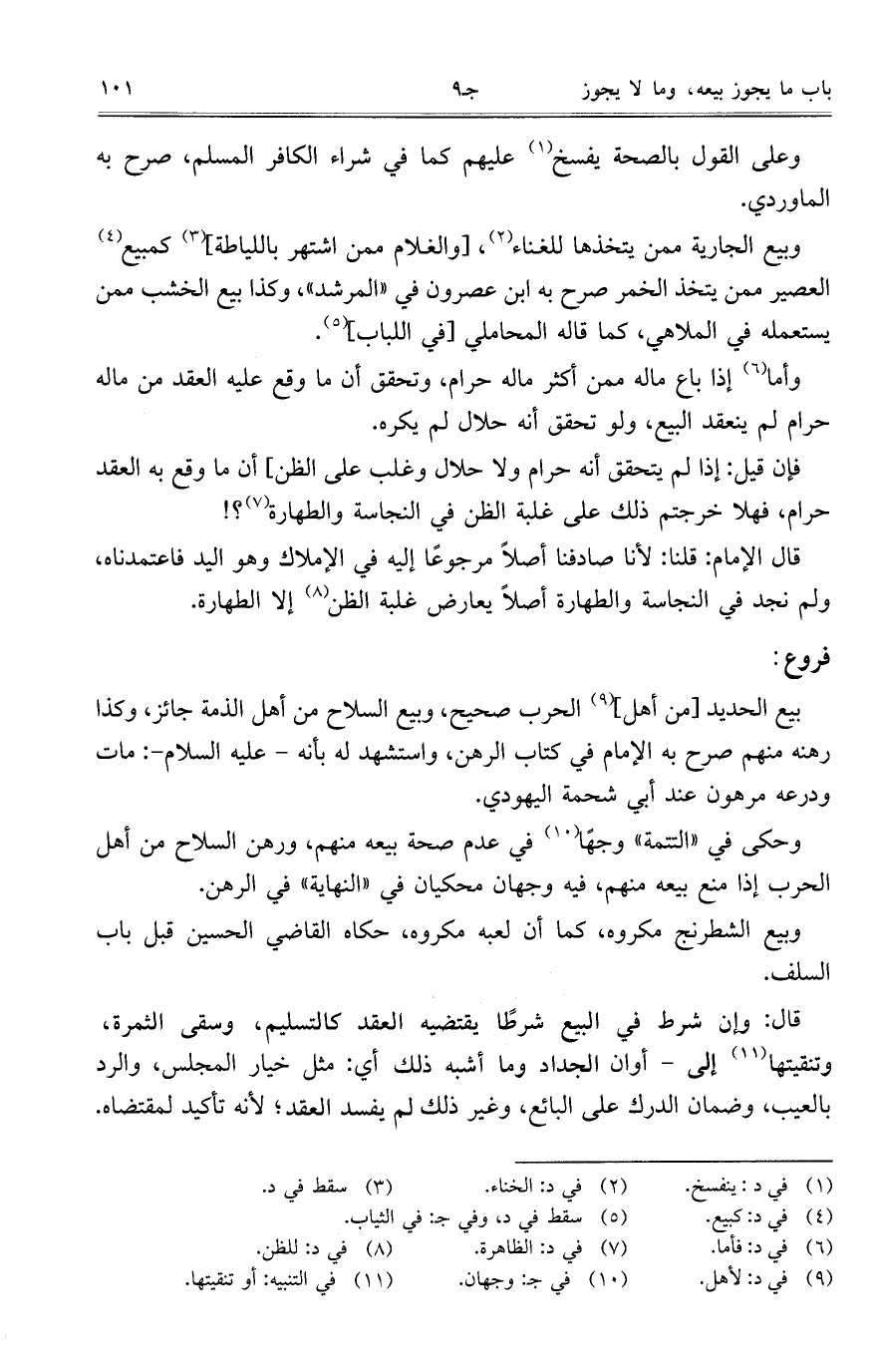 بيع الحديد [من أهل] الحرب صحيح، وبيع السلاح من أهل الذمة جائز، وكذا رهنه منهم صرح به الإمام في كتاب الرهن، واستشهد له بأنه - عليه السلام -: مات ودرعه مرهون عند أبي شحمة اليهودي.