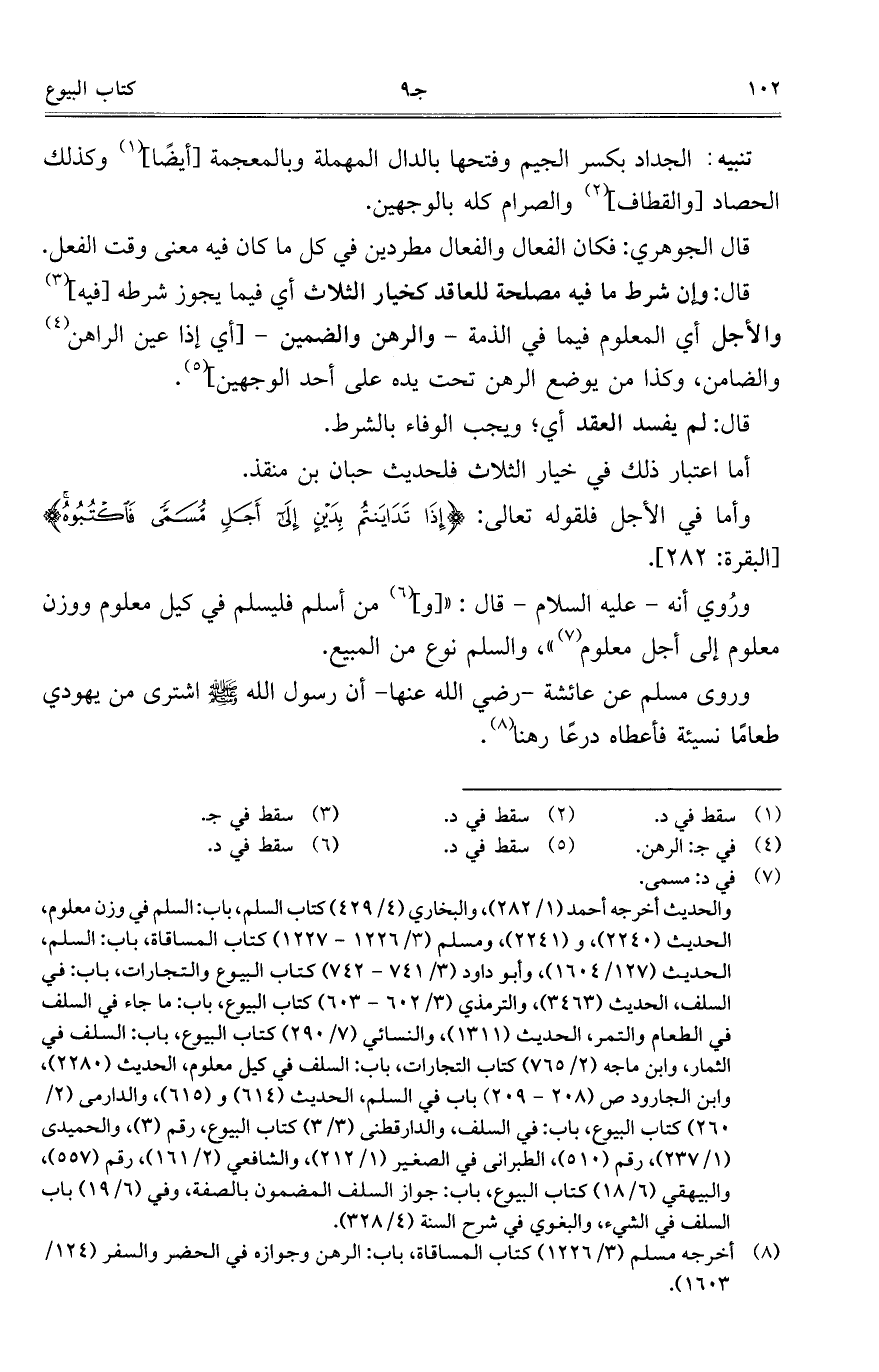 ورُوي أنه – عليه السلام – قال: " [و] من أسلم فليسلم في كيل معلوم ووزن معلوم إلى أجل معلوم"، والسلم نوع من البيع.