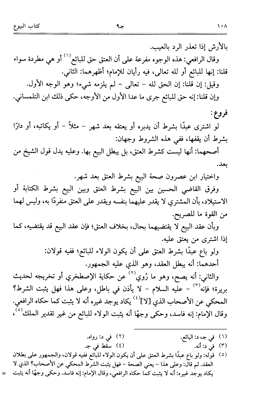 وقال الرافعي: هذه الوجوه مفرعة على أن العتق حق للبائع أو هي مطردة سواء قلنا: إنها للبائع أو لله تعالى، فيه رأيان للإمام؛ أظهرهما: الثاني.