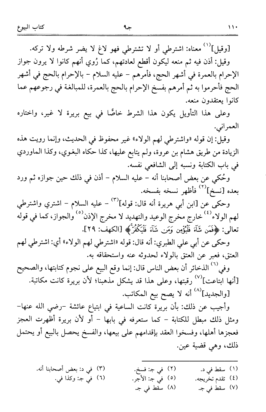 وعلى هذا التأويل يكون هذا الشرط خاصاً في بيع بريرة لا غير، واختاره العمراني.