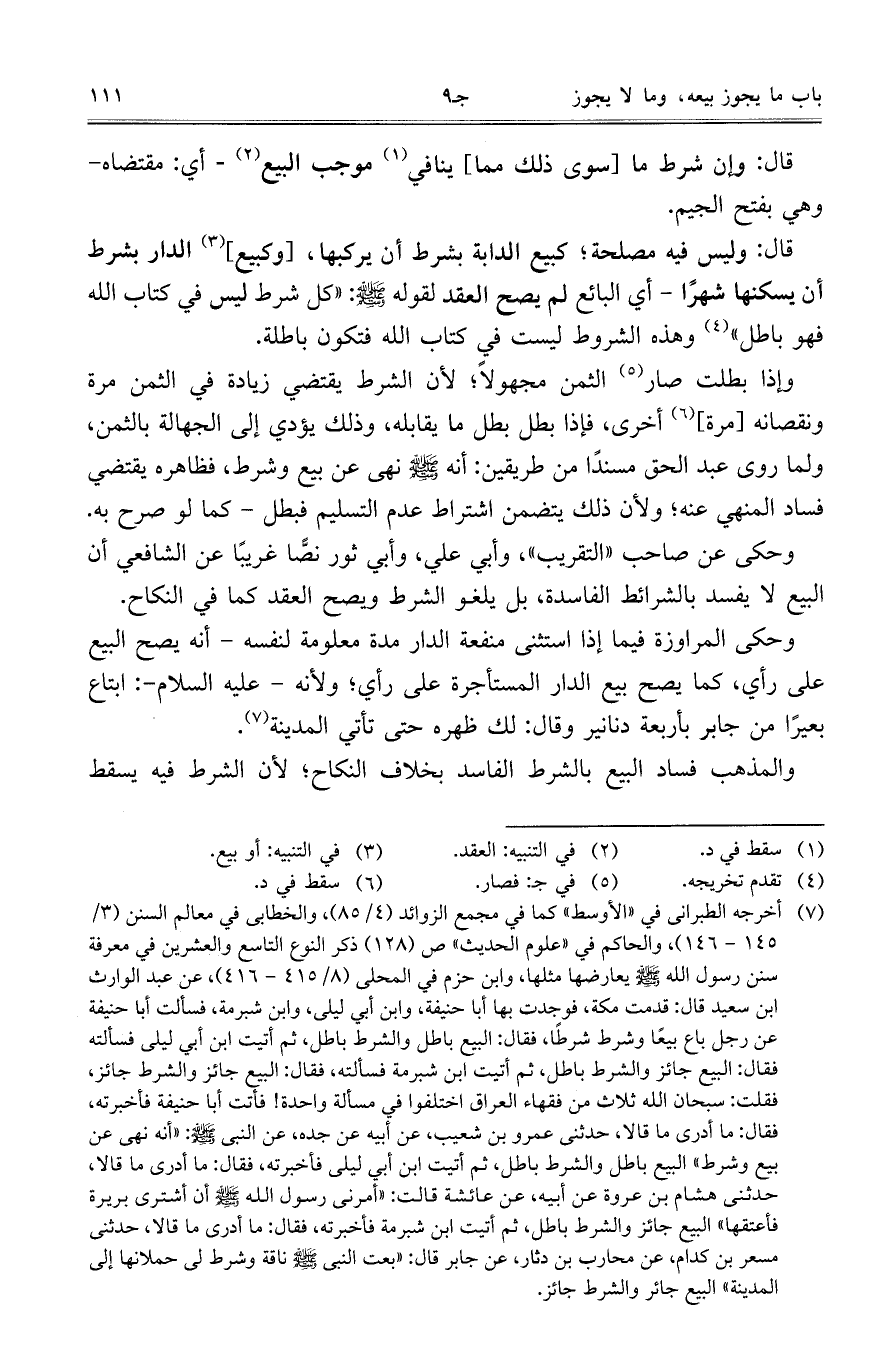 قال: وإن شرط ما [سوى ذلك مما] ينافي موجب البيع – أي: مقتضاه – وهي بفتح الجيم.