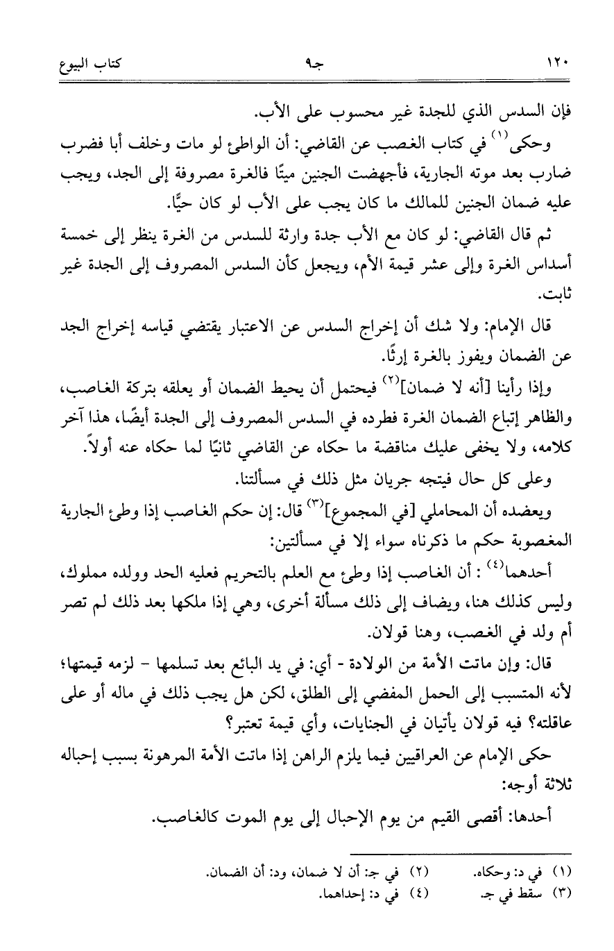 وإذا رأينا [أنه لا ضمان] فيحتمل أن يحيط الضمان أو يعلقه بتركة الغاصب، والظاهر إتباع الضمان الغرة فطرده في السدس المصروف إلى الجدة أيضاً، هذا آخر كلامه، ولا يخفى عليك مناقضة ما حكاه عن القاضي ثانياً لما حكاه عنه أولاً.
