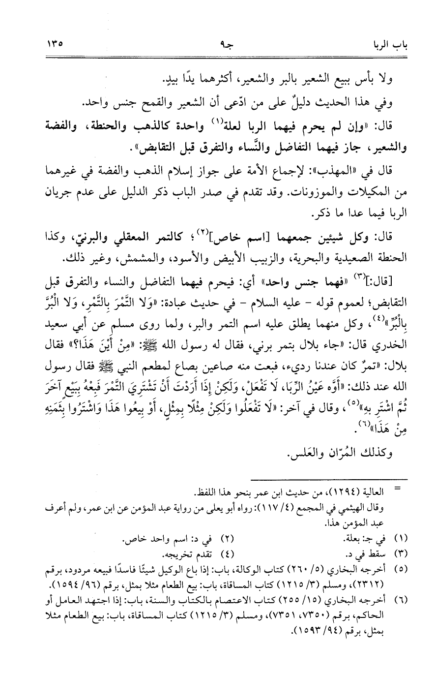 قال: وكل شيئين جمعهما [اسم خاص]؛ كالتمر المعقلي والبرنيّ، وكذا الحنطة الصعيدية والبحرية، والزبيب الأبيض والأسود، والمشمش، وغير ذلك.