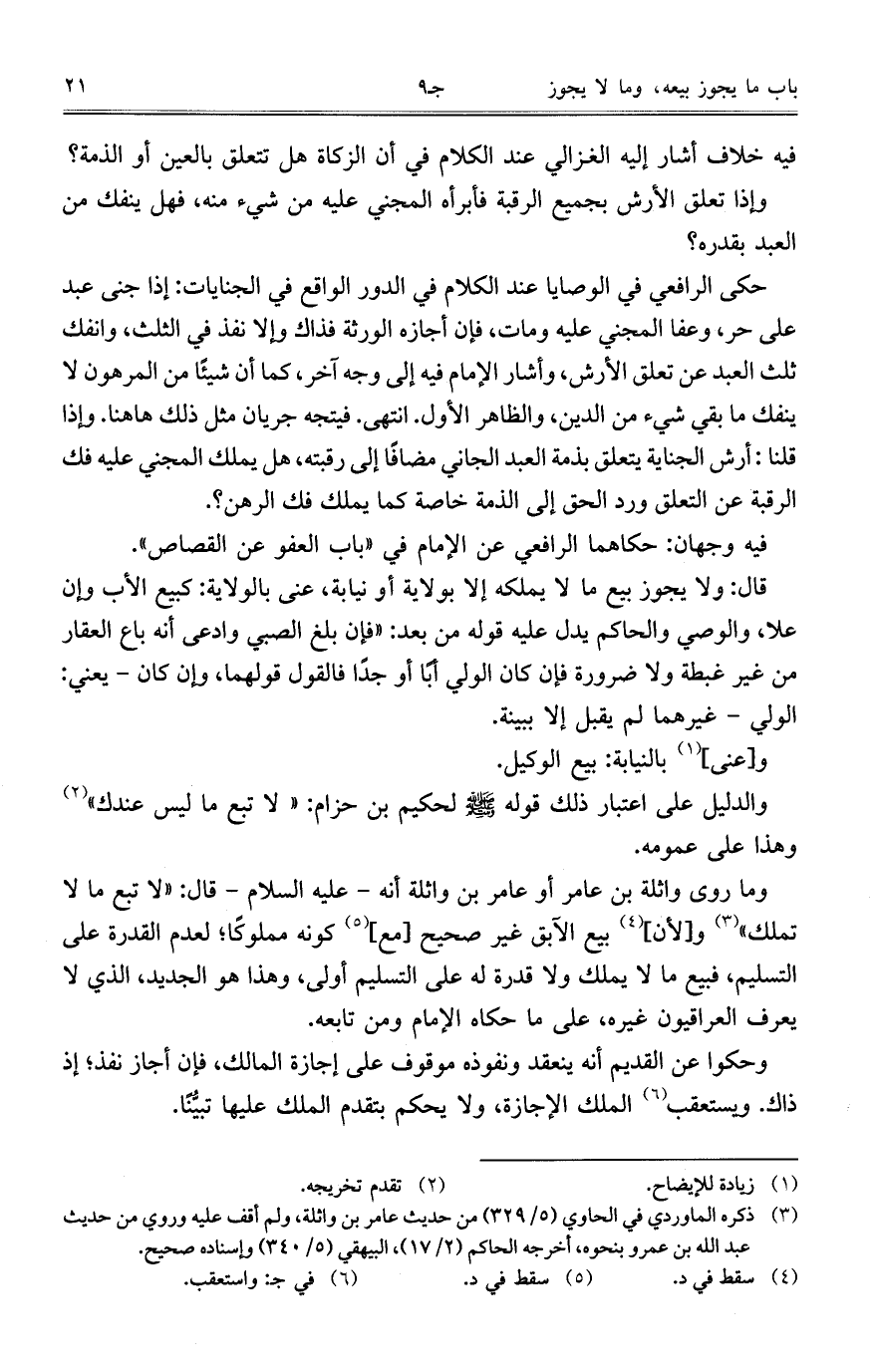 وما روى واثلة بن عامر أو عامر بن واثلة أنه – عليه السالم – قال: "لا تبع ما لا تملك" و [لأن] بيع الآبق غير صحيح [مع] كونه مملوكاً؛ لعدم القدرة على التسليم، فبيع ما لا يملك ولا قدرة له على التسليم أولى، وهذا هو الجديد، الذي لا يعرف العراقيون غيره، على ما حكاه الإمام ومن تابعه.