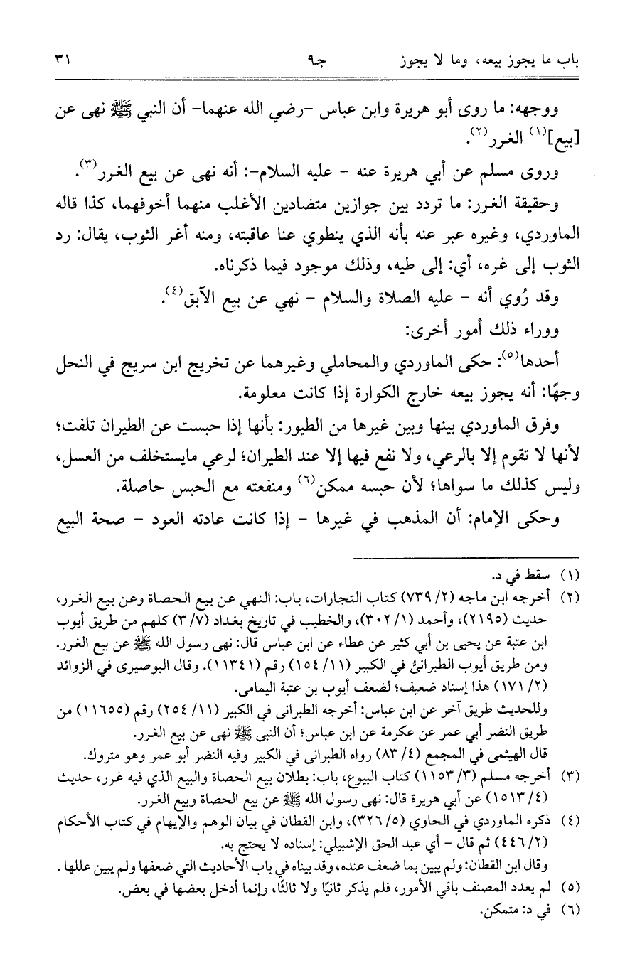 وروى مسلم عن أبي هريرة عنه – عليه السلام -: أنه نهى عن بيع الغرر.