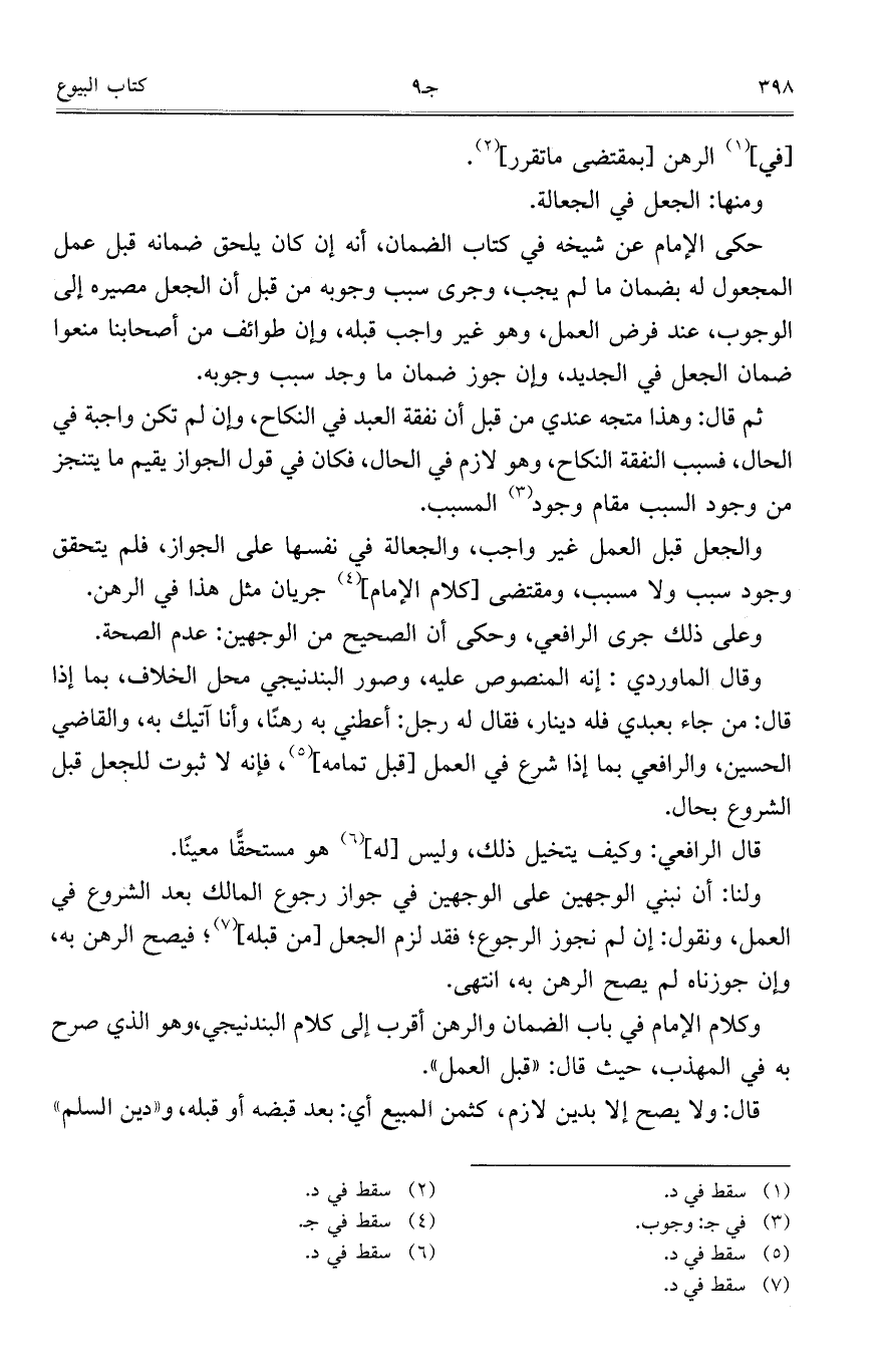 والجعل قبل العمل غير واجب، والجعالة في نفسها على الجواز، فلم يتحقق وجود سبب ولا مسبب، ومقتضى [كلام الإمام] جريان مثل هذا في الرهن.