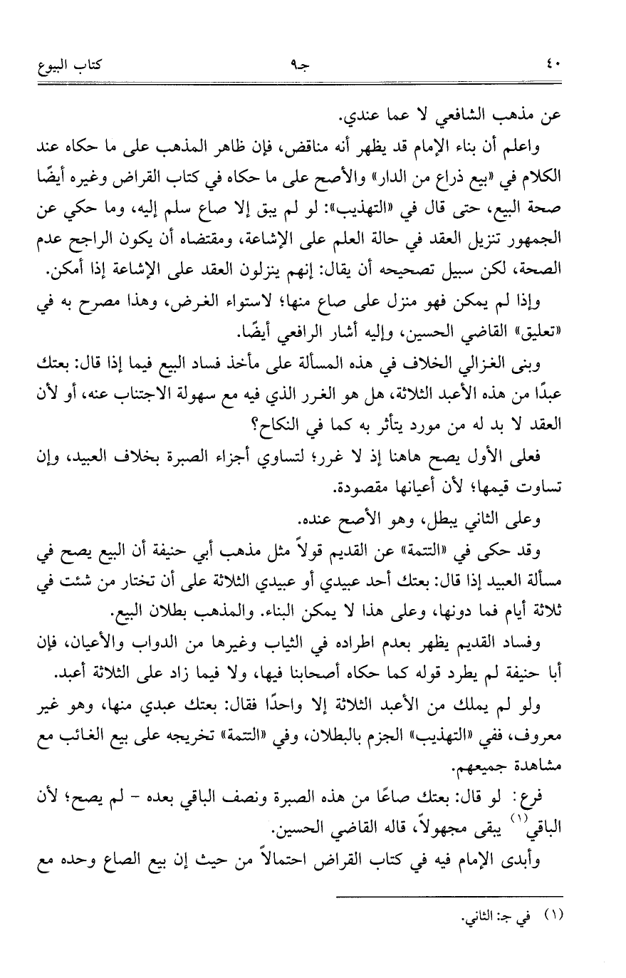 وأبدى الإمام فيه في كتاب القراض احتمالاً من حيث إن بيع الصاع وحده مع