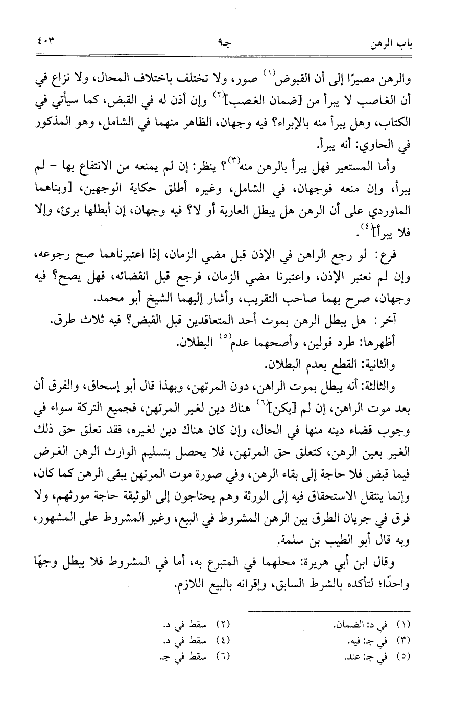 آخر: هل يبطل الرهن بموت أحد المتعاقدين قبل القبض؟ فيه ثلاث طرق.