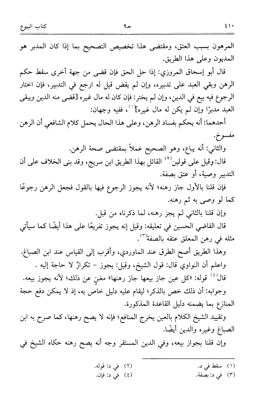المرهون بسبب العتق، ومقتضى هذا تخصيص التصحيح بما إذا كان المدبر هو المديون وعلى هذا الطريق.