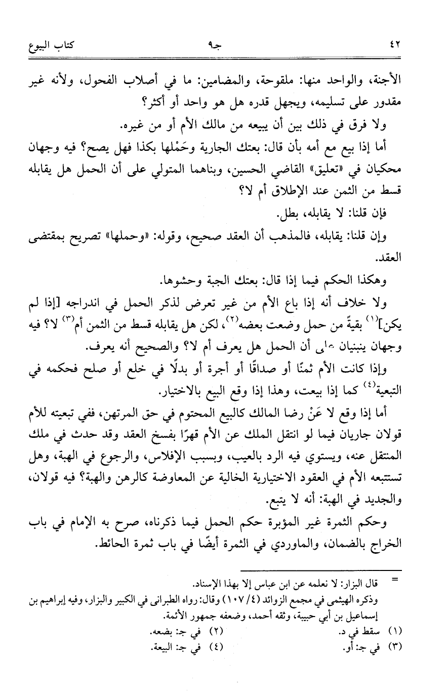 ولا خلاف أنه إذا باع الأم من غير تعرض لذكر الحمل في اندراجه [إذا لم يكن] بقيةً من حمل وضعت بعضه، لكن هل يقابله قسط من الثمن أم لا؟ فيه وجهان ينبنيان على أن الحمل هل يعرف أم لا؟ والصحيح أنه يعرف.