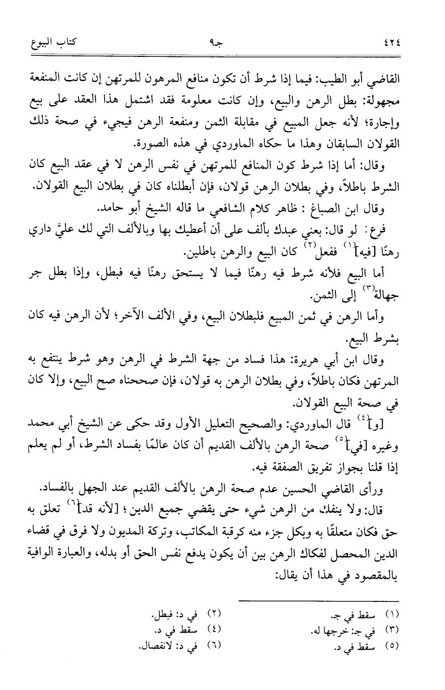 [و] قال الماوردي: والصحيح التعليل الأول وقد حكى عن الشيخ أبي محمد وغيره [في] صحة الرهن بالألف القديم أن كان عالماً بفساد الشرط، أو لم يعلم إذا قلنا بجواز تفريق الصفقة فيه.