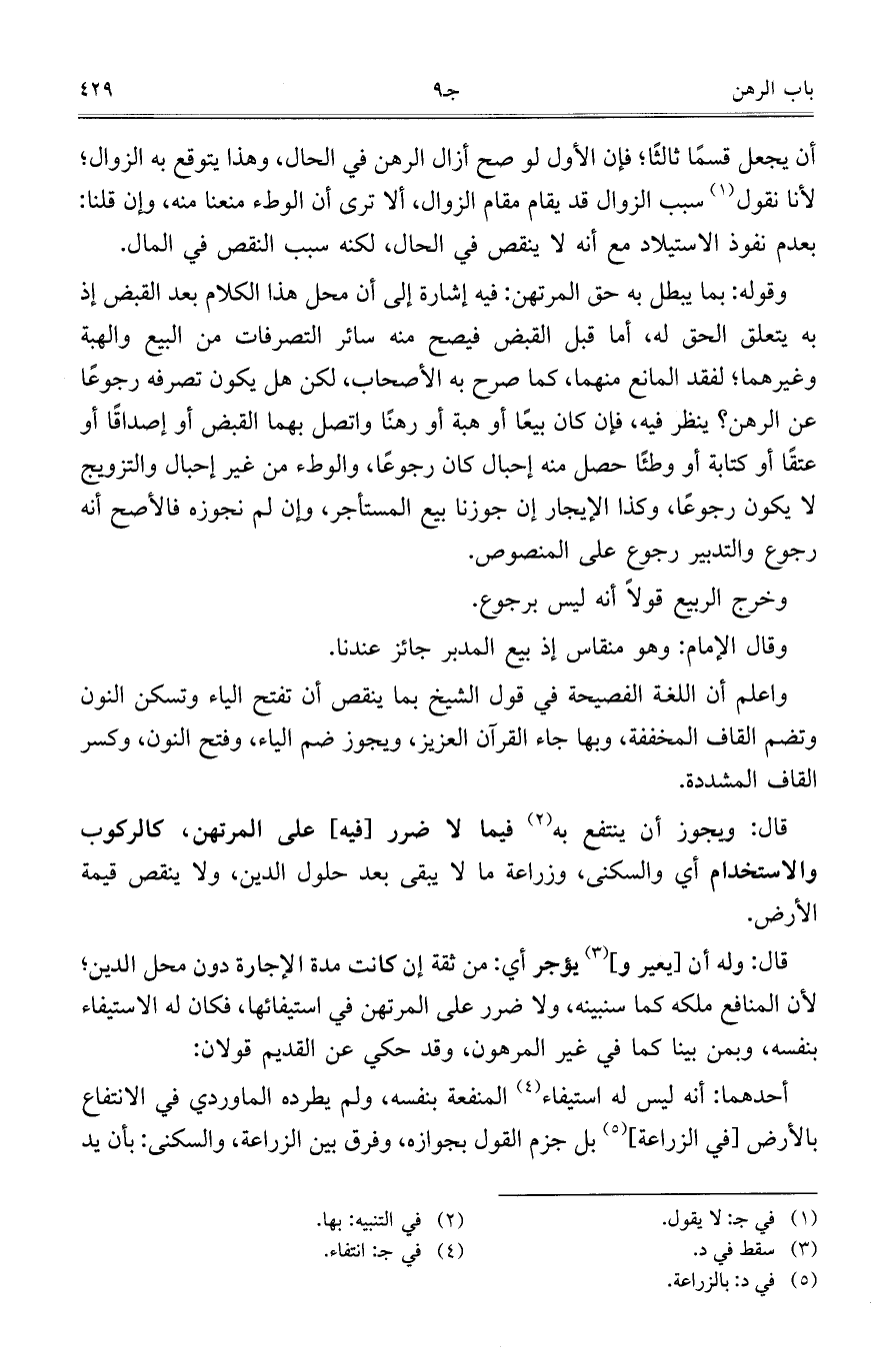 قال: ويجوز أن ينتفع به فيما لا ضرر [فيه] على المرتهن، كالركوب والاستخدام أي والسكنى، وزراعة ما لا يبقى بعد حلول الدين، ولا ينقص قيمة الأرض.