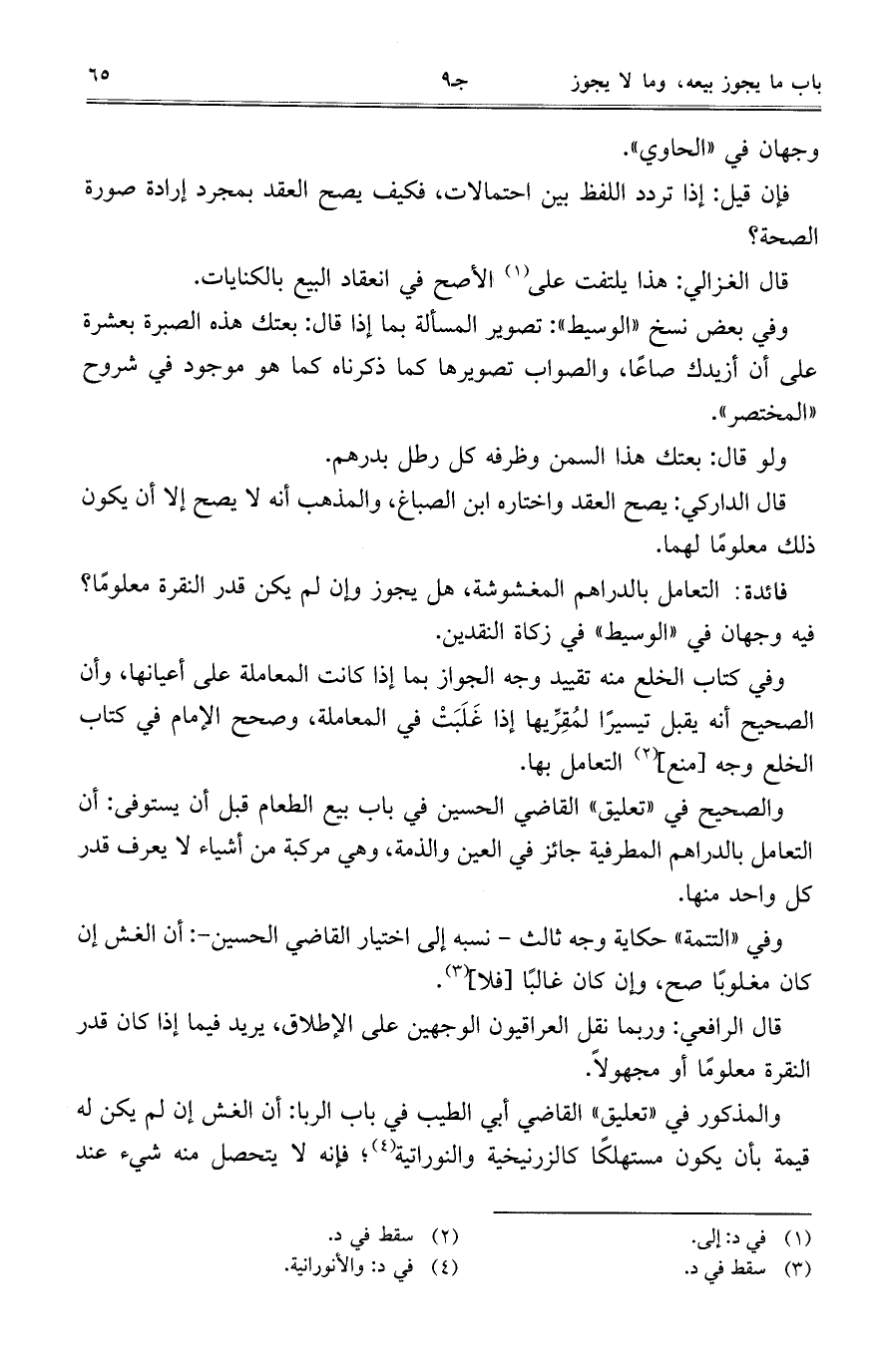 وفي بعض نسخ "الوسيط":تصوير المسألة بما إذا قال: بعتك هذه الصبرة بعشرة على ان أزيدك صاعاً، والصواب تصويرها كما ذكرناه كما هو موجود في شروح "المختصر".