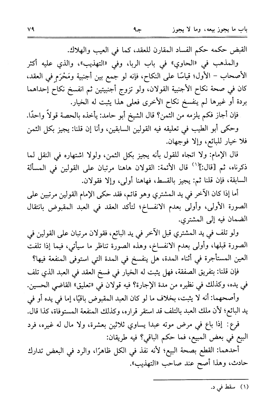 القبض حكمه حكم الفساد المقارن للعقد، كما في العيب والهلاك.