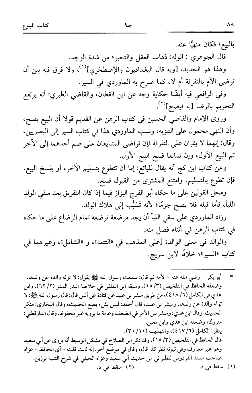 ومحل القولين على ما حكاه أبو الفرج البزاز فيما إذا كان التفريق بعد سقي الولد اللبأ، فأما قبله فلا يصح جزماً؛ لأنه تَسَبُّب إلى هلاك الولد.