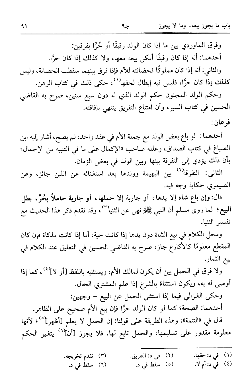 وفرق الماوردي بين ما إذا كان الولد رقيقاً أو حُرًّا بفرقين: