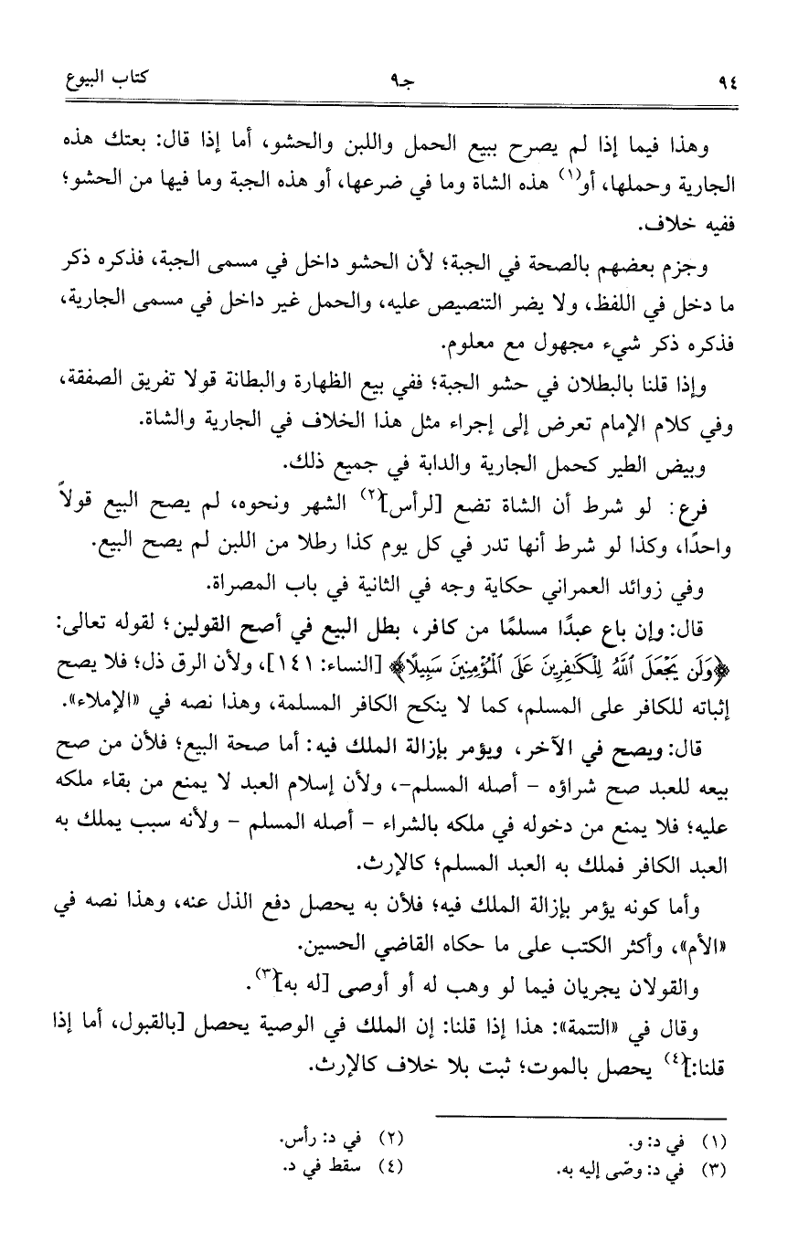 وهذا فيما إذا لم يصرح ببيع الحمل واللبن والحشو، أما إذا قال: بعتك هذه الجارية وحملها، أو هذه الشاة وما في ضرعها، أو هذه الجبة وما فيها من الحشو؛ ففيه خلاف.