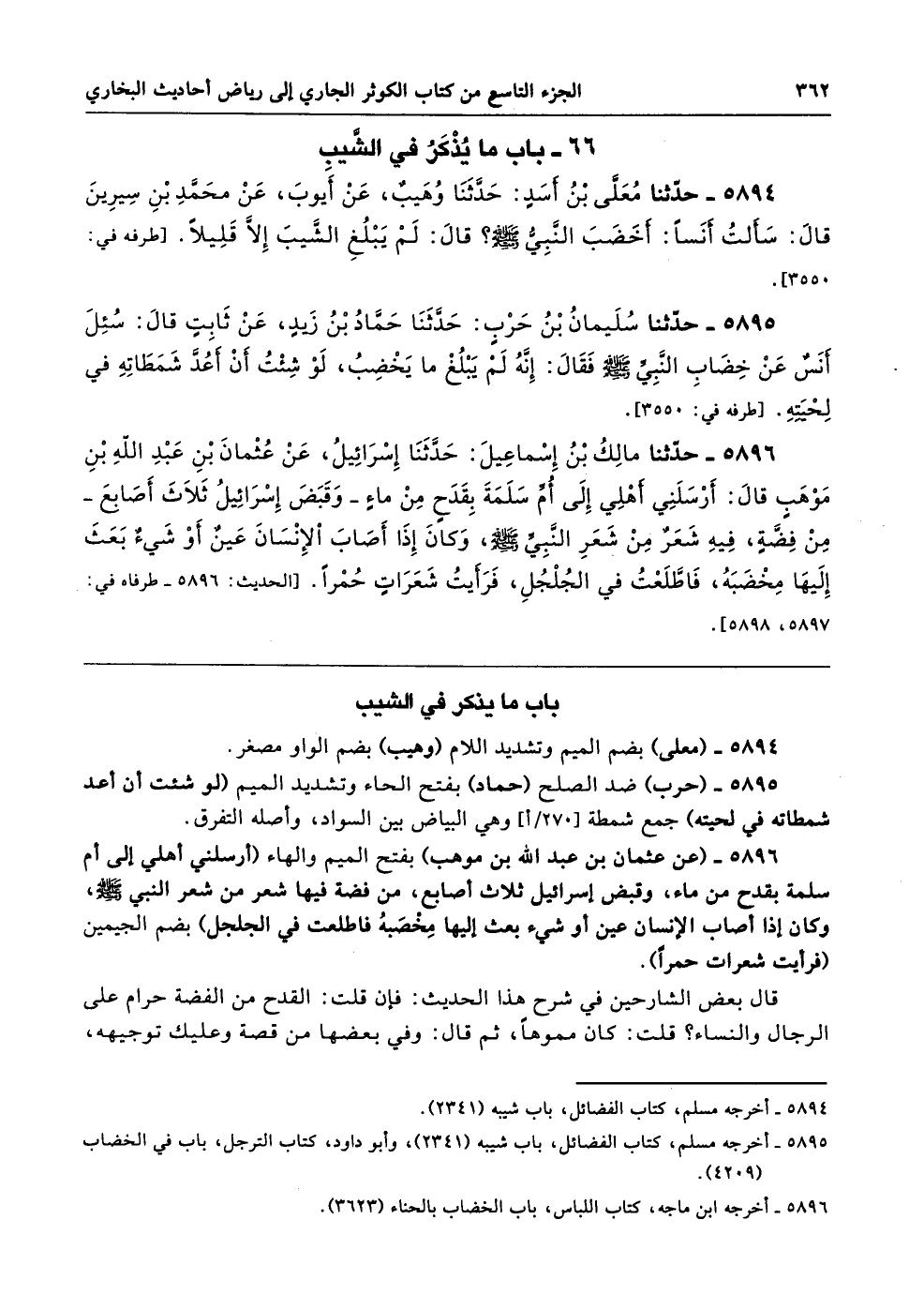 5895 - (حرب) ضد الصلح (حماد) بفتح الحاء وتشديد الميم (لو شئت أن أعد شمطاته في لحيته) جمع شمطة وهي البياض بين السواد، وأصله التفرق.