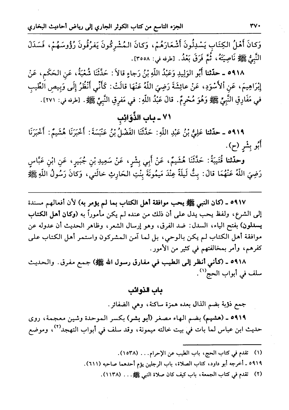 كتاب الكوثر الجاري إلى رياض أحاديث البخاري (اسم الجزء: 9)