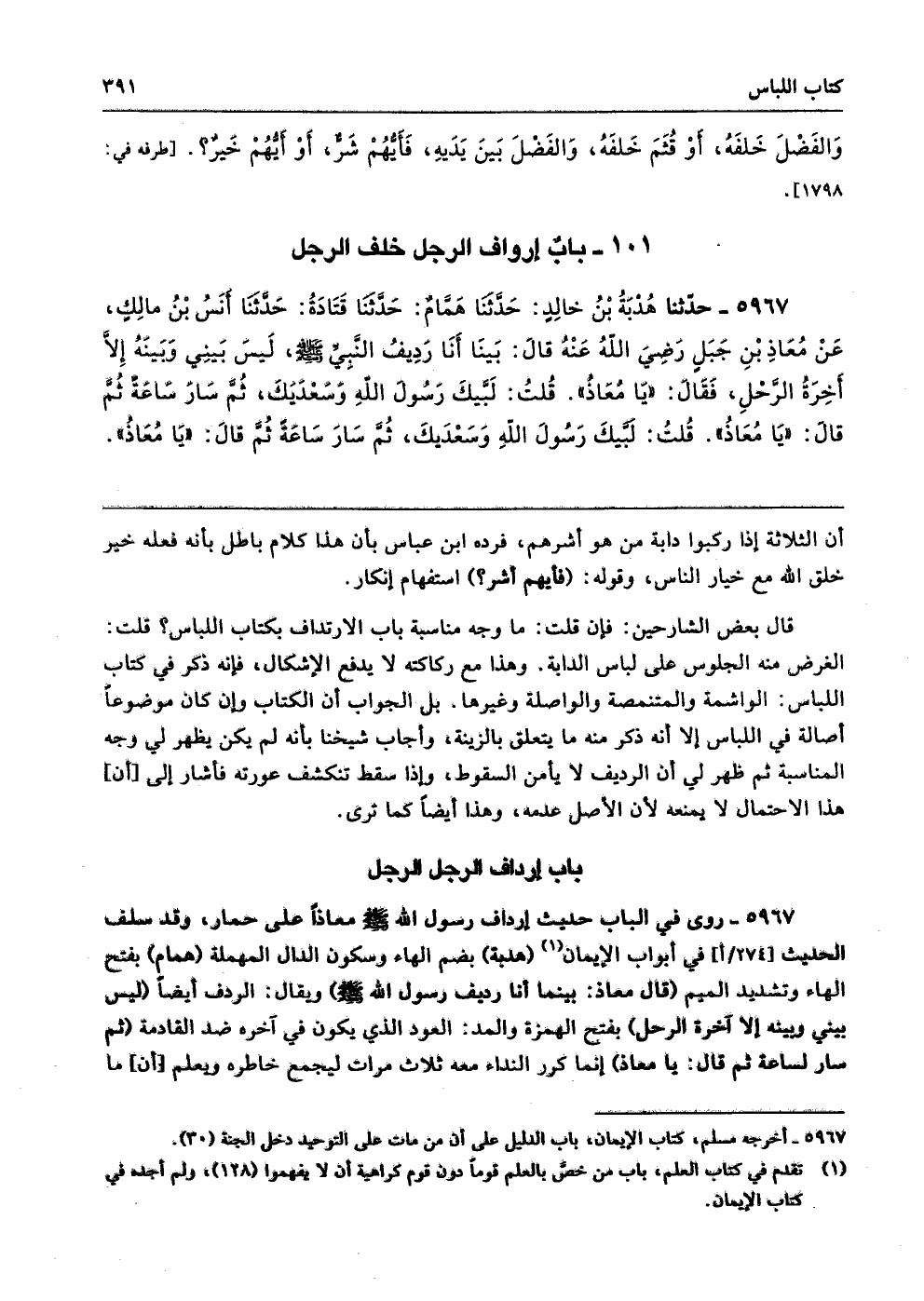 101 - باب إِرْدَافِ الرَّجُلِ خَلْفَ الرَّجُلِ