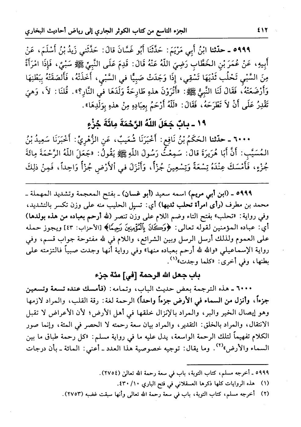 كتاب الكوثر الجاري إلى رياض أحاديث البخاري (اسم الجزء: 9)