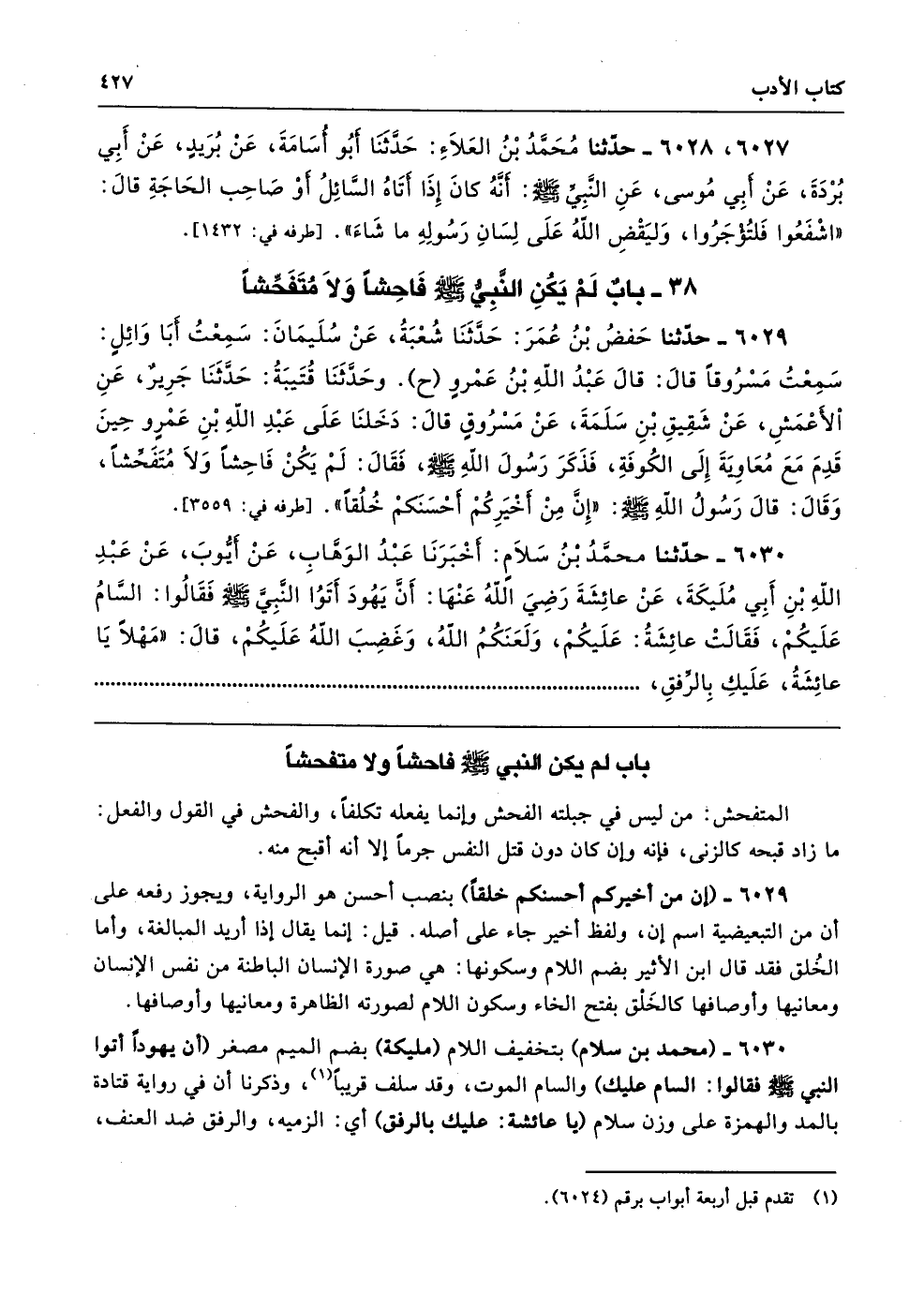 38 - باب لَمْ يَكُنِ النَّبِىُّ - صلى الله عليه وسلم - فَاحِشًا وَلاَ مُتَفَحِّشًا