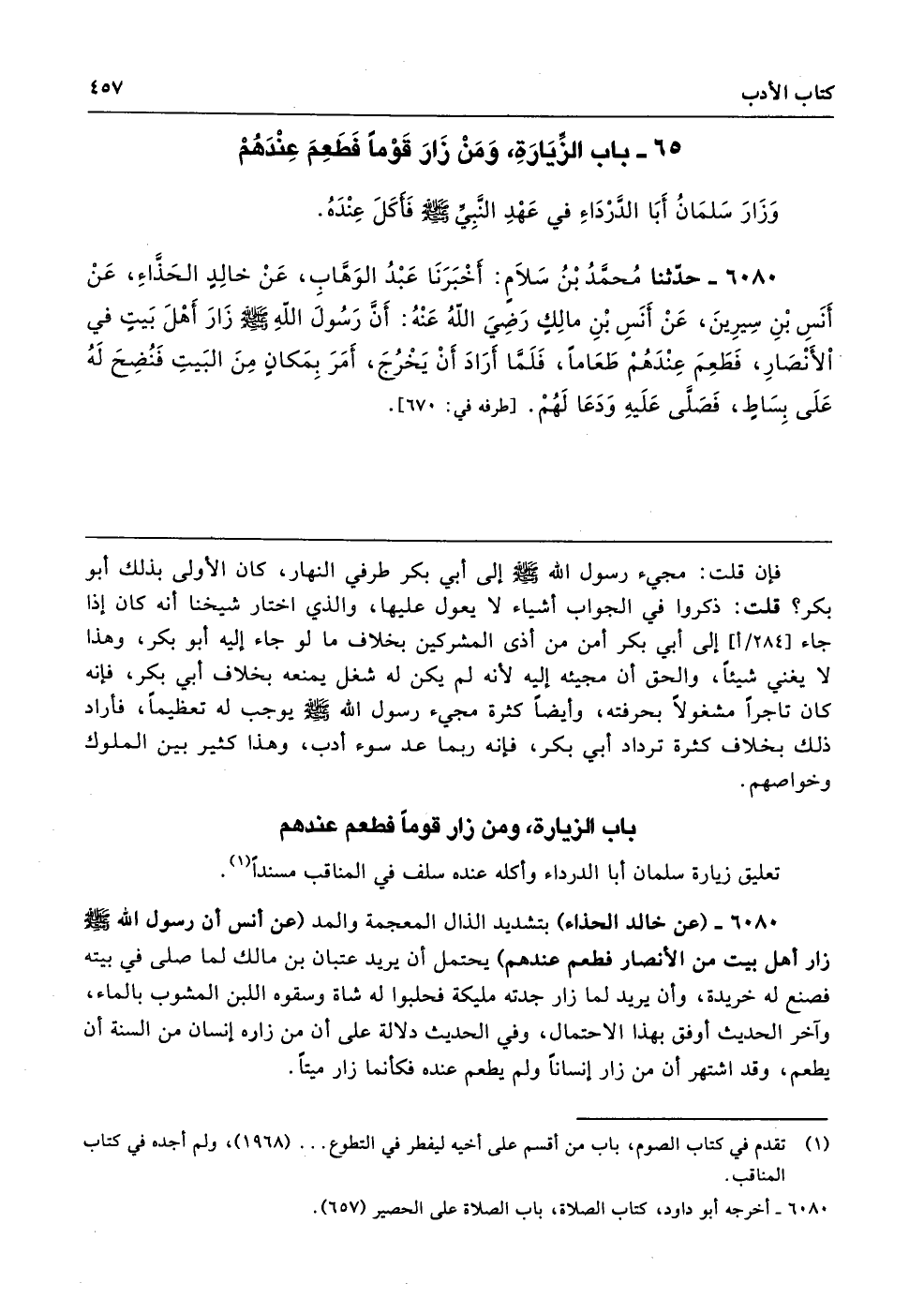 65 - باب الزِّيَارَةِ وَمَنْ زَارَ، قَوْمًا فَطَعِمَ عِنْدَهُمْ