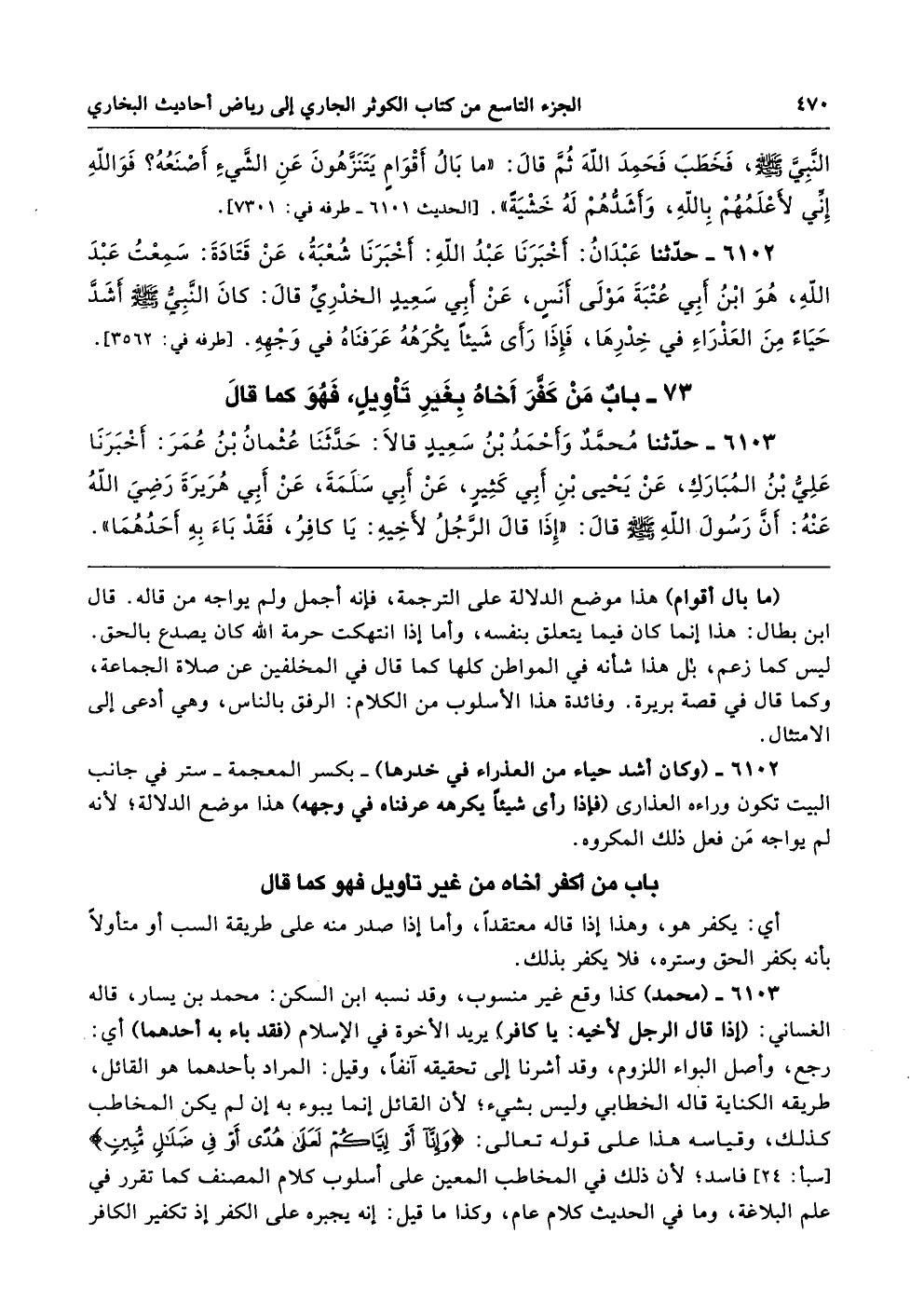 73 - باب مَنْ كَفَّرَ أَخَاهُ بِغَيْرِ تَأْوِيلٍ فَهْوَ كَمَا قَالَ