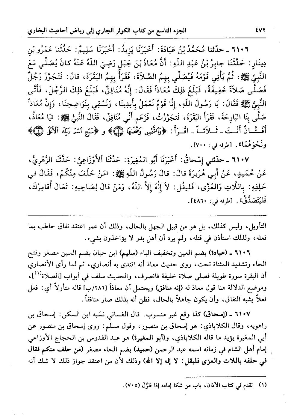 كتاب الكوثر الجاري إلى رياض أحاديث البخاري (اسم الجزء: 9)