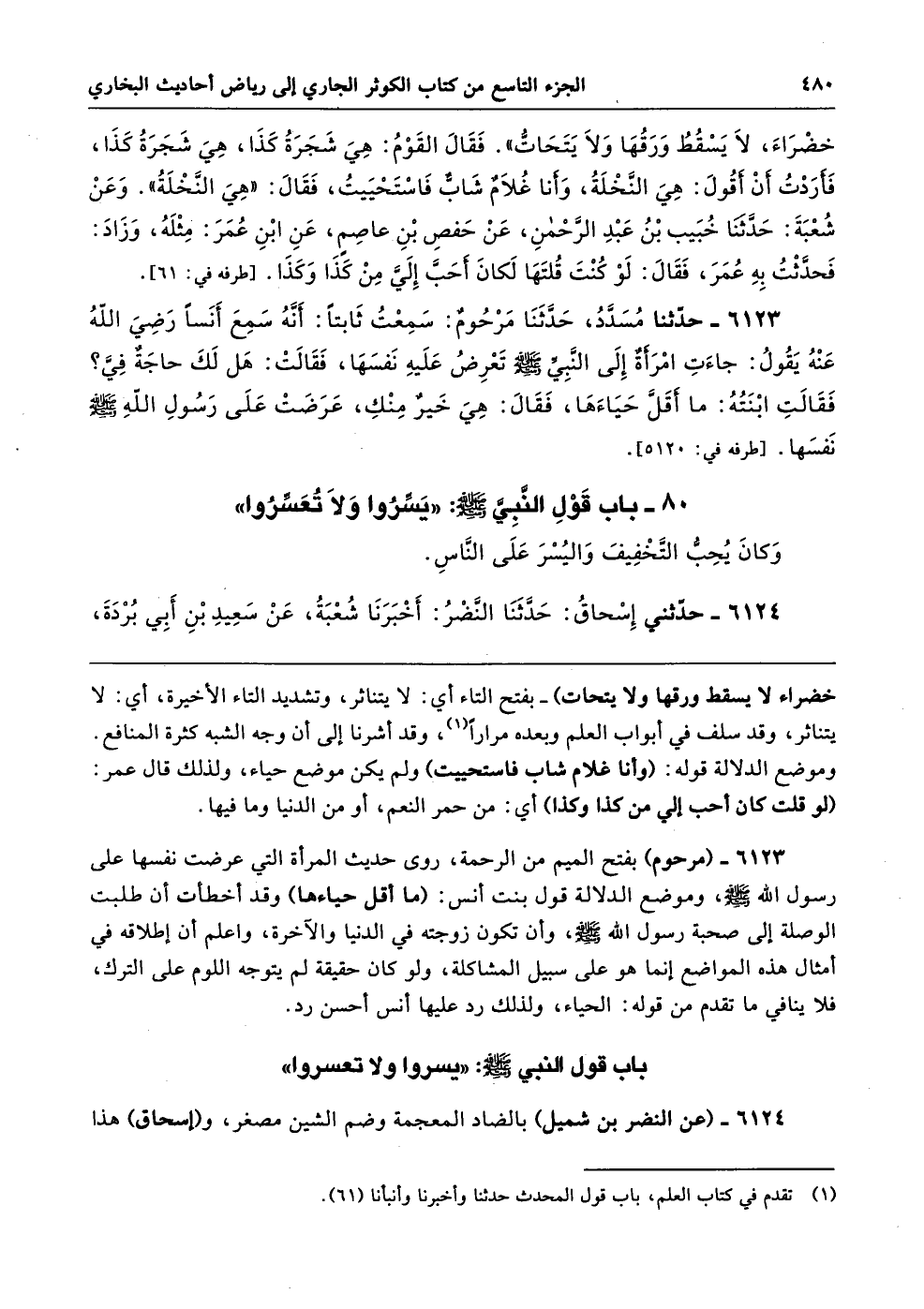 80 - باب قَوْلِ النَّبِيِّ - صلى الله عليه وسلم - «يَسِّرُوا وَلاَ تُعَسِّرُوا»
