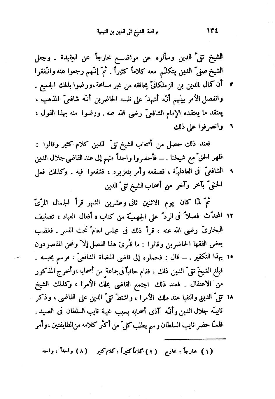 الشيخ تقىّ الدين وسألوه عن مواضع خارجا (1) عن العقيدة. وجعل الشيخ صفىّ الدين يتكلّم معه كلاما كثيرا (2). ثمّ إنّهم رجعوا عنه واتّفقوا أن كمال الدين بن الزملكانىّ يحاققه من غير مسامحة، ورضوا بذلك الجميع.