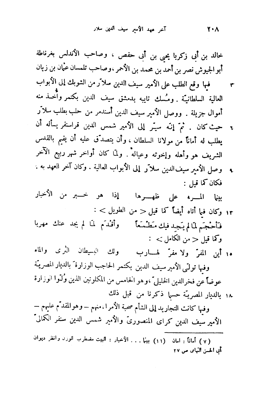 فيها وقع الطلب على الأمير سيف الدين سلاّر من الشوبك إلى الأبواب العالية السلطانيّة. ومسك نايبه بدمشق سيف الدين بكتمر وأخذ منه أموال جزيلة. ووصل الأمير سيف الدين أسندمر من حلب بطلب سلاّر حيث كان. ثمّ إنّه سيّر إلى الأمير شمس الدين قراسنقر يسأله أن يطلب له أمانا (7) من مولانا السلطان، وأن يتصدّق عليه أن يقيم بالقدس الشريف هو وأهله وإخوته وعياله. ولمّا كان أواخر شهر ربيع الآخر وصل الأمير سيف الدين سلاّر إلى الأبواب العالية، وكان آخر العهد به، فكان كما قيل: