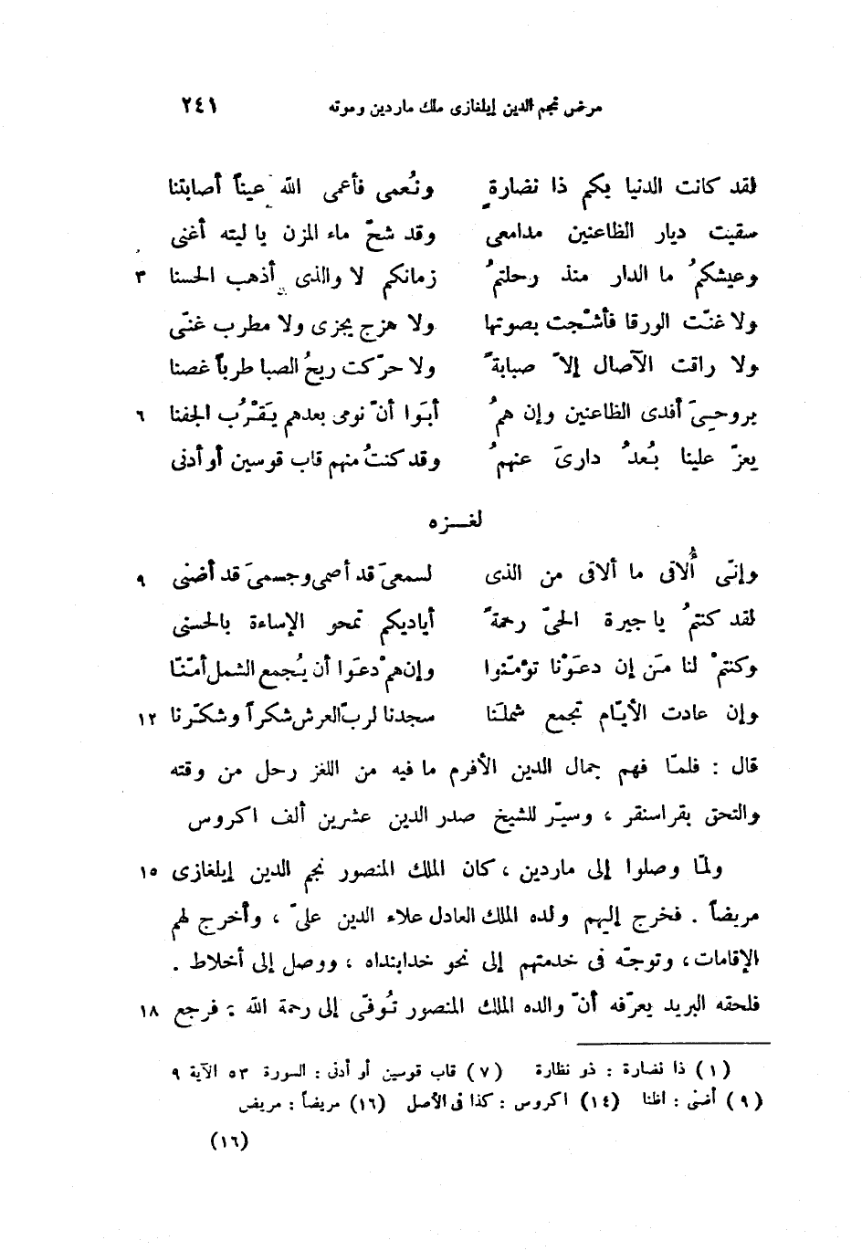 ولمّا وصلوا إلى ماردين، كان الملك المنصور نجم الدين إيلغازى مريضا (16). فخرج إليهم ولده الملك العادل علاء الدين علىّ، وأخرج لهم الإقامات، وتوجّه فى خدمتهم إلى نحو خدابنداه، ووصل إلى أخلاط.
