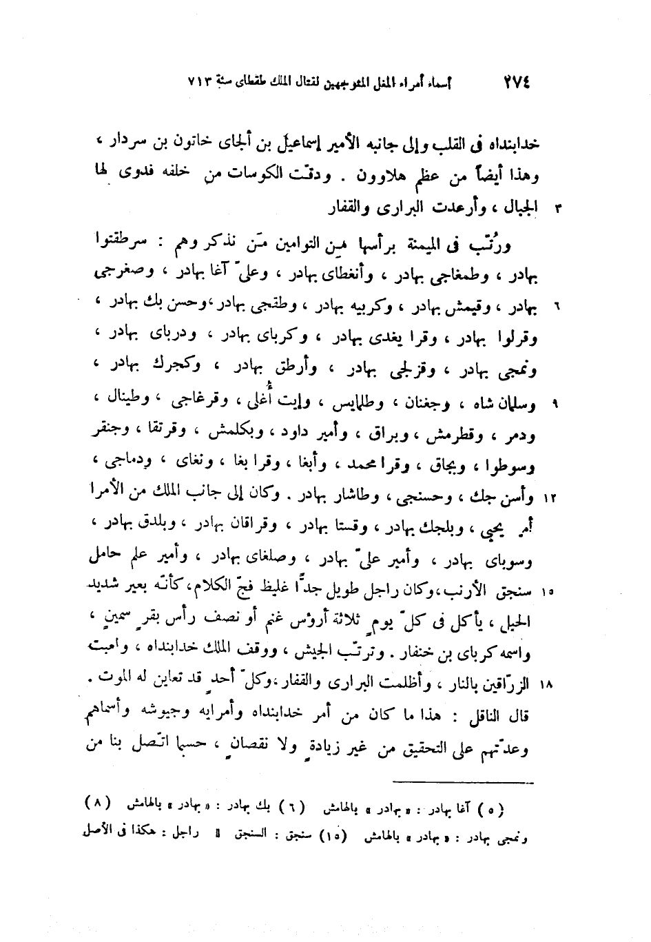 قال الناقل: هذا ما كان من أمر خدابنداه وأمرايه وجيوشه وأسماهم وعدّتهم على التحقيق من غير زيادة ولا نقصان، حسبما اتّصل بنا من