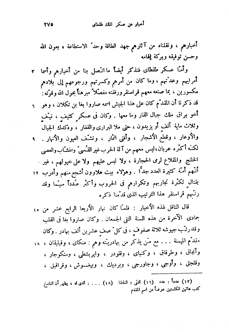 وأمّا عسكر طقطاى فنذكر أيضا ما اتّصل بنا من أخبارهم وأسما أمرايهم وعدّتهم، وما كان من أمرهم وكسرتهم ورجوعهم إلى بلادهم مكسورين، بما صنعه معهم قراسنقر ورفقته مفصّلا مبرهنا بحول الله وقوّته: