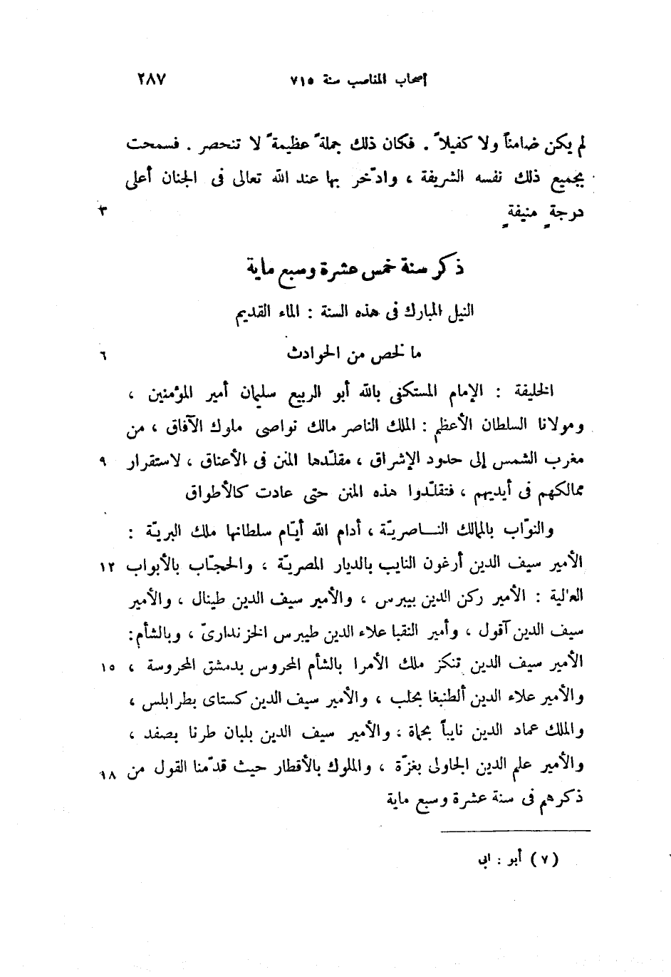 ذكر [حوادث] سنة خمس عشرة وسبع ماية