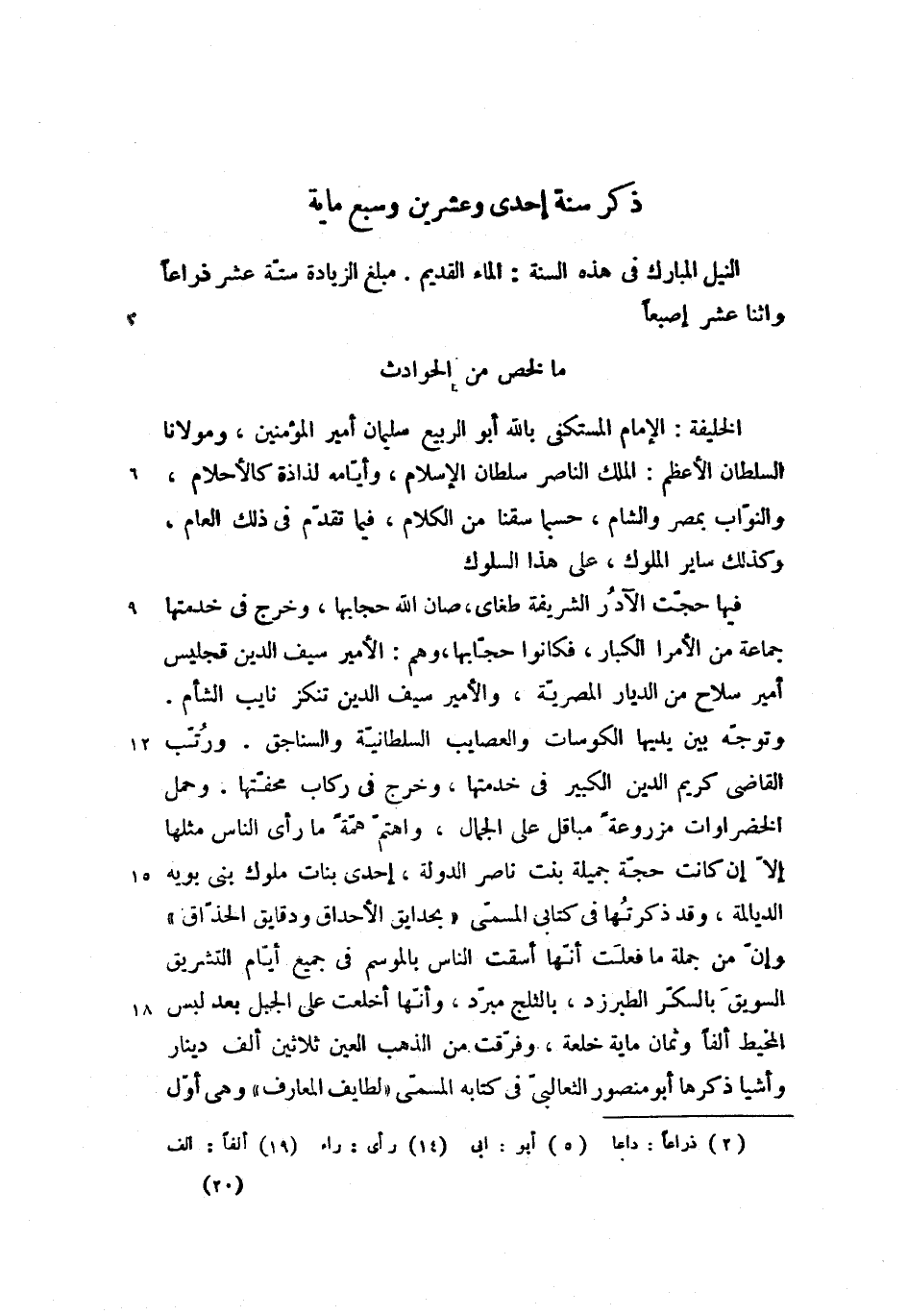 النيل المبارك فى هذه السنة: الماء القديم. مبلغ الزيادة ستّة عشر ذراعا (2) واثنا عشر إصبعا