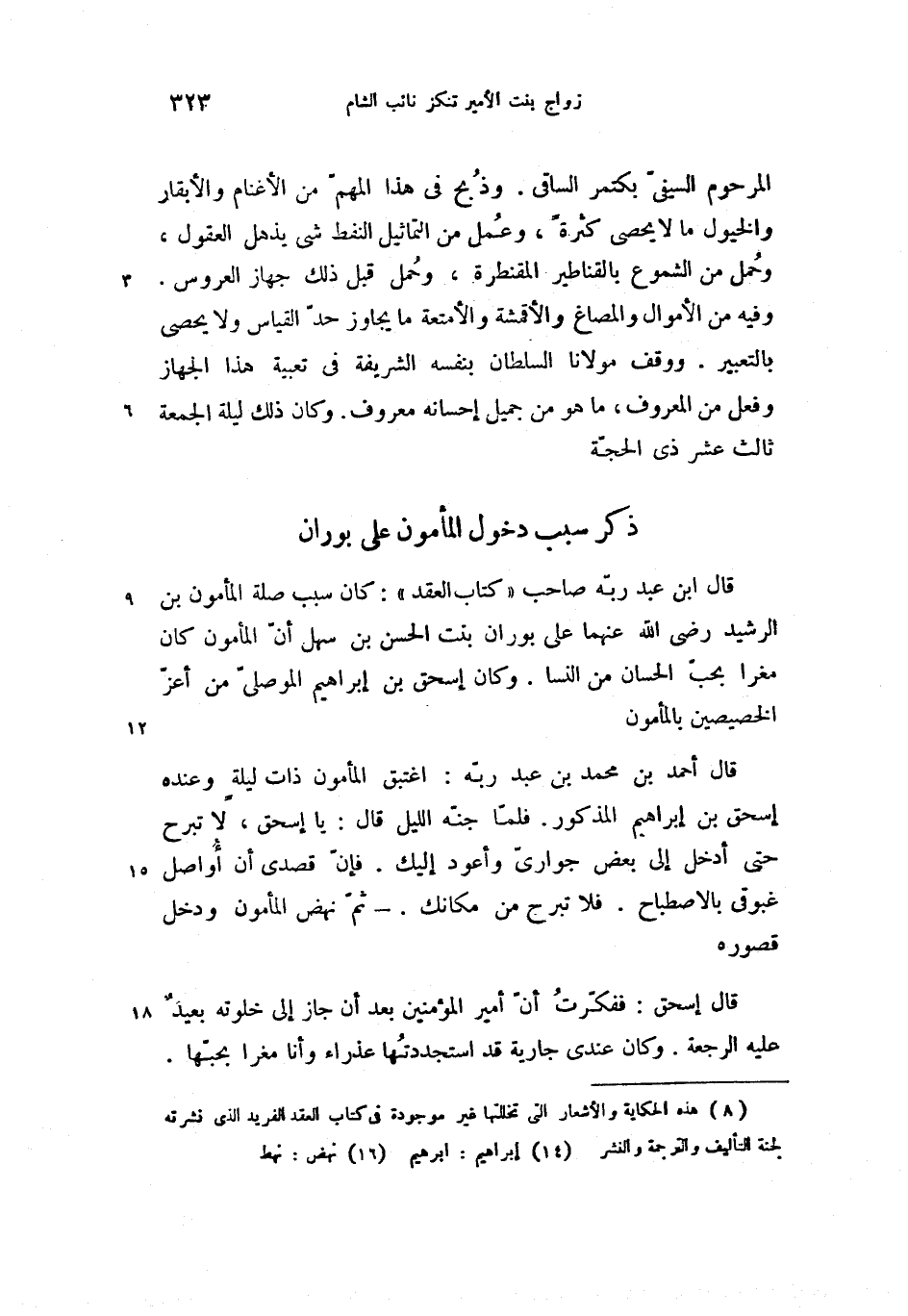 (8) هذه الحكاية والأشعار التى تخللتها غير موجودة فى كتاب العقد الفريد الذى نشرته لجنة التأليف والترجمة والنشر