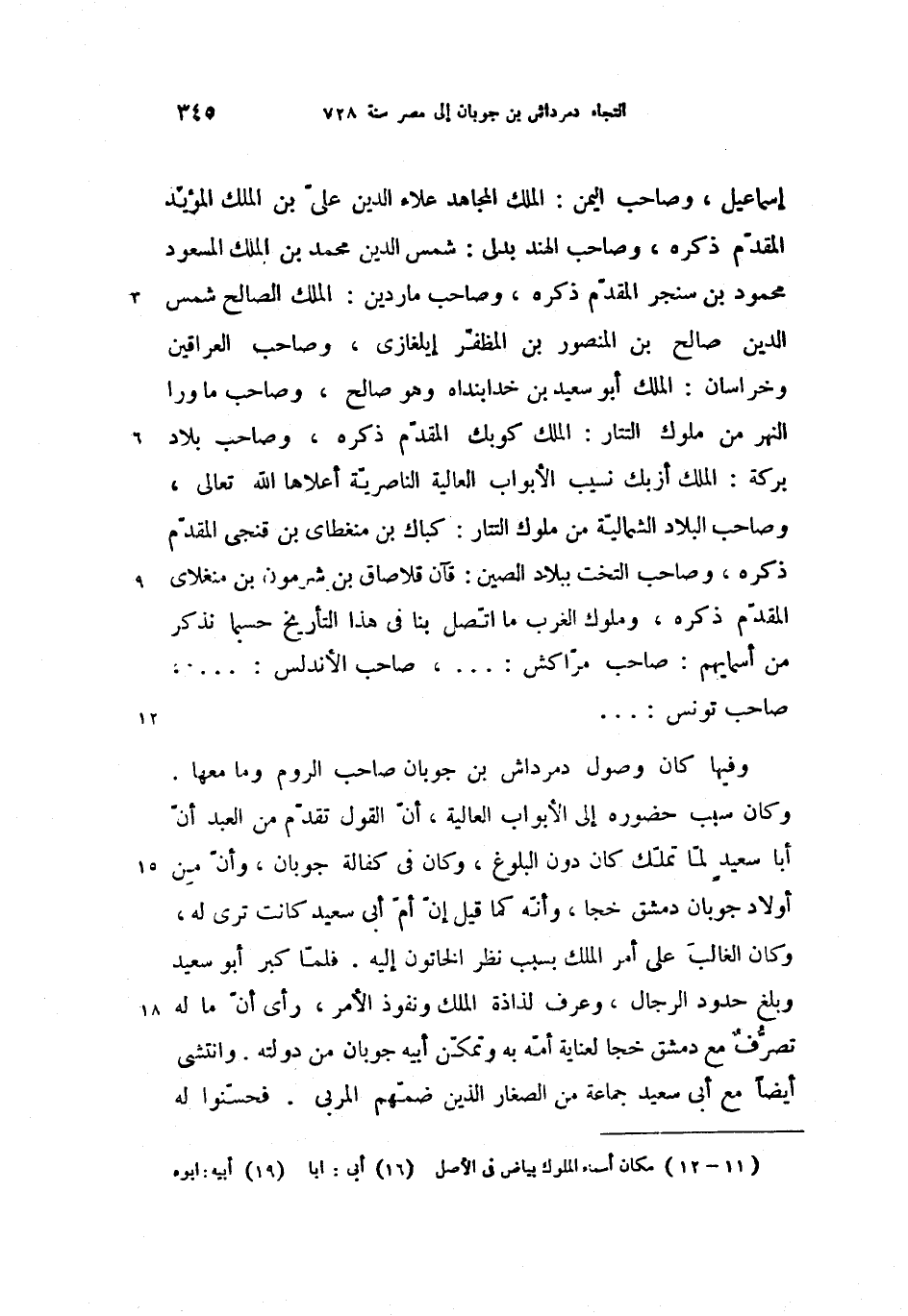 وكان سبب حضوره إلى الأبواب العالية، أنّ القول تقدّم من العبد أنّ أبا سعيد لمّا تملّك كان دون البلوغ، وكان فى كفالة جوبان، وأنّ من أولاد جوبان دمشق خجا، وأنّه كما قيل إنّ أمّ أبى (16) سعيد كانت ترى له، وكان الغالب على أمر الملك بسبب نظر الخاتون إليه. فلمّا كبر أبو سعيد وبلغ حدود الرجال، وعرف لذاذة الملك ونفوذ الأمر، رأى أنّ ما له تصرّف مع دمشق خجا لعناية أمّه به وتمكّن أبيه (19) جوبان من دولته. وانتشى أيضا مع أبى سعيد جماعة من الصغار الذين ضمّهم المربى. فحسّنوا له