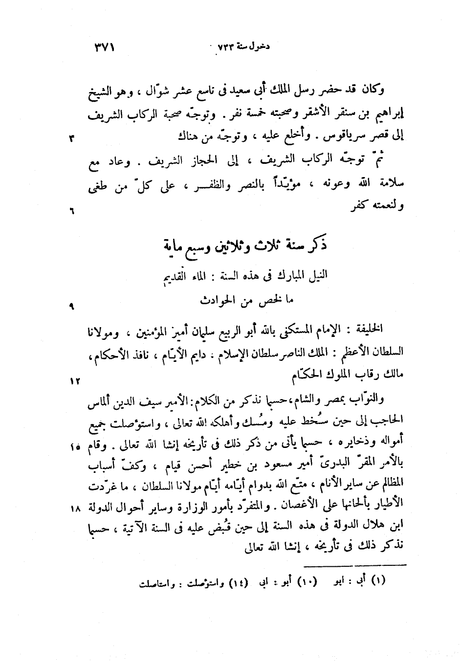 ذكر [حوادث] سنة ثلاث وثلاثين وسبع ماية