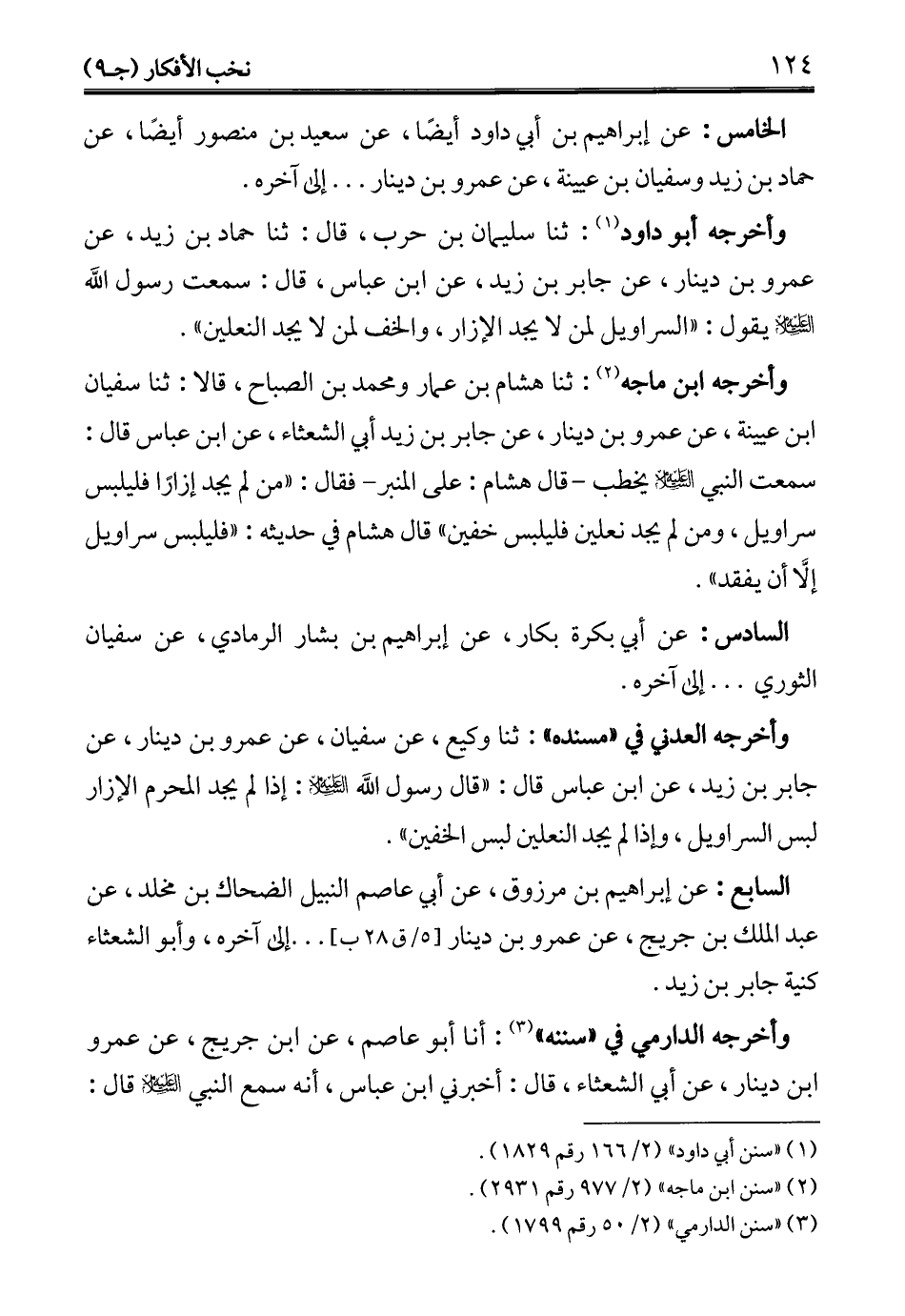 الخامس: عن إبراهيم بن أبي داود أيضاً، عن سعيد بن منصور أيضًا، عن حماد بن زيد وسفيان بن عيينة، عن عمرو بن دينار ... إلى آخره.