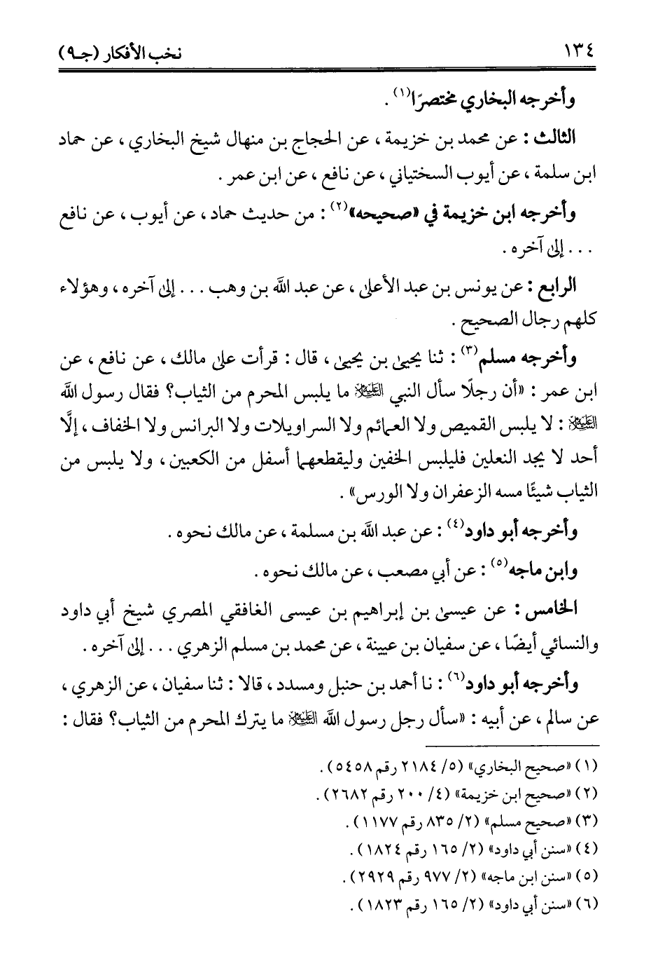 الثالث: عن محمد بن خزيمة، عن الحجاج بن منهال شيخ البخاري، عن حماد ابن سلمة، عن أيوب السختياني، عن نافع، عن ابن عمر.