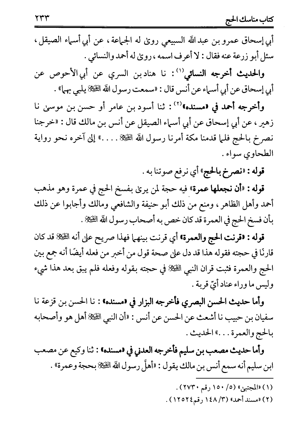 والحديث أخرجه النسائي (¬1): نا هناد بن السري عن أبي الأحوص عن أبي إسحاق عن أبي أسماء عن أنس قال: "سمعت رسول الله -عليه السلام- يلبي بهما".