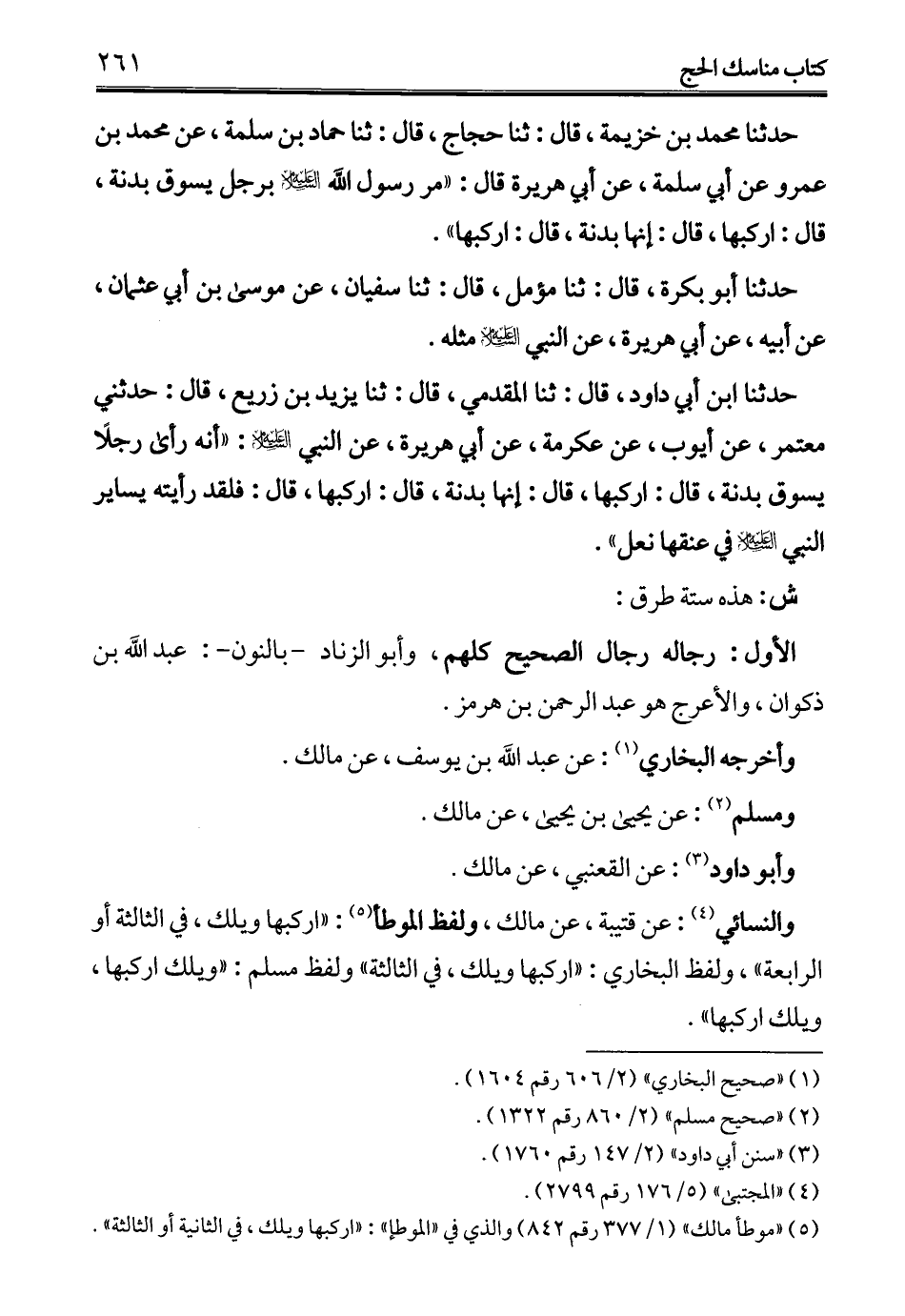 (¬5) "موطأ مالك" (1/ 377 رقم 842) والذي في "الموطإ": "اركبها ويلك، في الثانية أو الثالثة".
