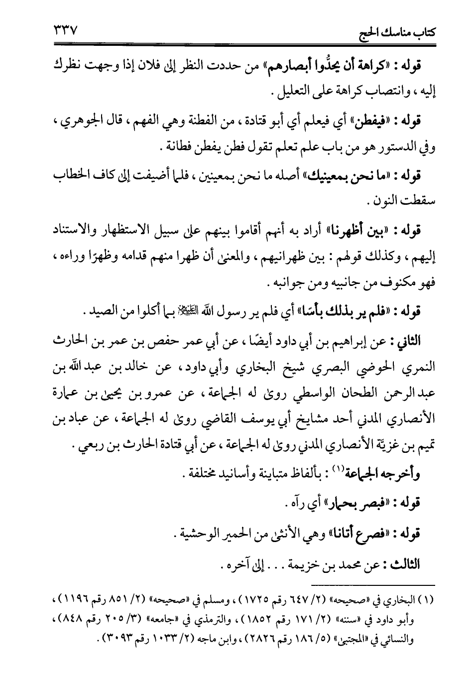 (¬1) البخاري في "صحيحه" (2/ 647 رقم 1725)، ومسلم في "صحيحه" (2/ 851 رقم 1196)، وأبو داود في "سننه" (2/ 171 رقم 1852)، والترمذي في "جامعه" (3/ 205 رقم 848)، والنسائي في "المجتبى" (5/ 186 رقم 2826)، وابن ماجه (2/ 1033 رقم 3093).