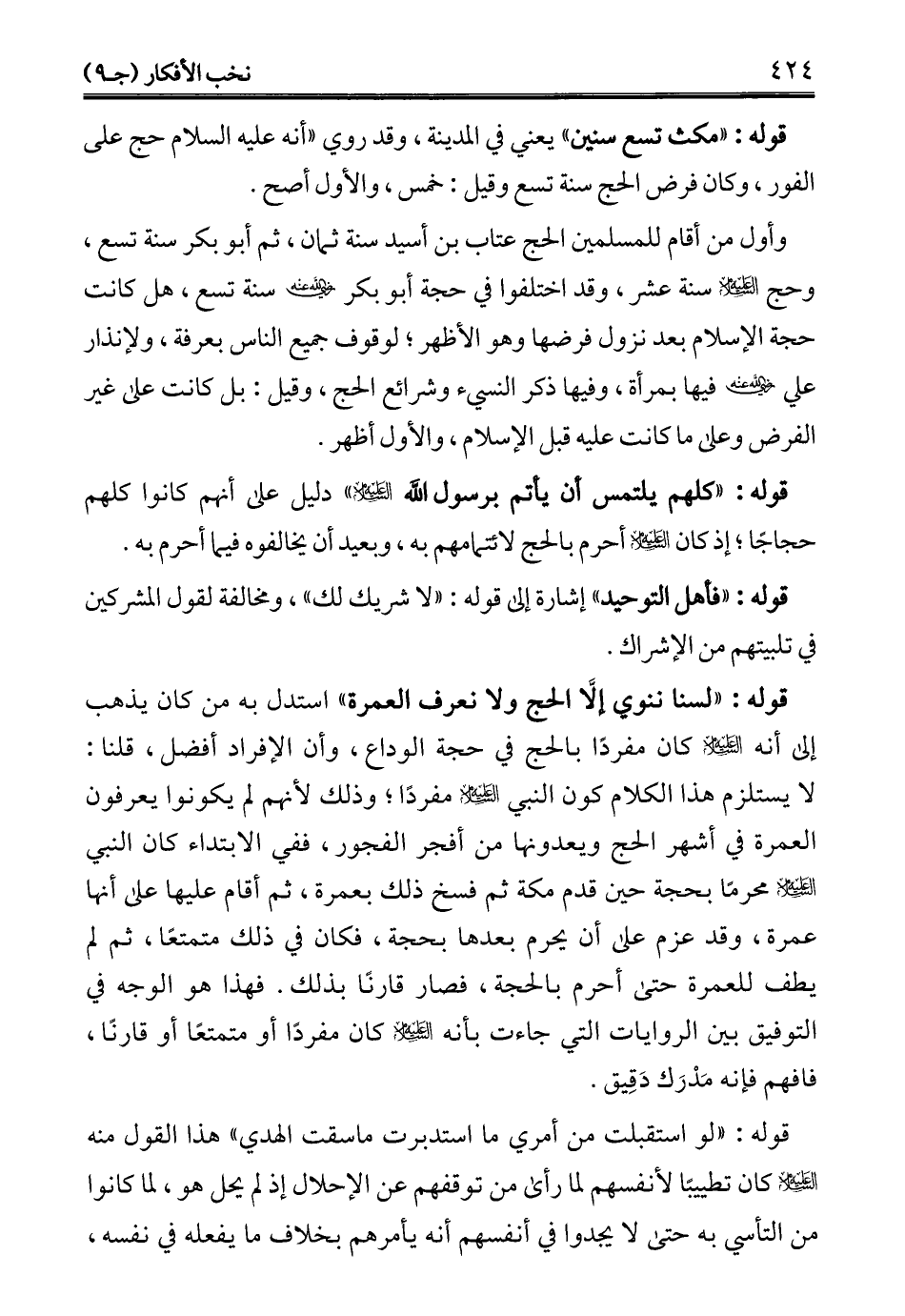 كتاب نخب الأفكار في تنقيح مباني الأخبار في شرح معاني الآثار (اسم الجزء: 9)