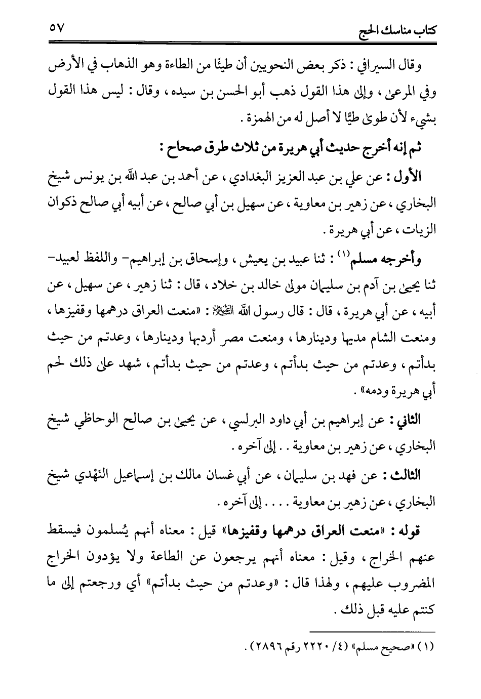 وأخرجه مسلم (¬1): ثنا عبيد بن يعيش، وإسحاق بن إبراهيم -واللفظ لعبيد- ثنا يحيى بن آدم بن سليمان مولى خالد بن خلاد، قال: ثنا زهير، عن سهيل، عن أبيه، عن أبي هريرة، قال: قال رسول الله - عليه السلام -: "منعت العراق درهمها وقفيزها، ومنعت الشام مديها ودينارها، ومنعت مصر أردبها ودينارها، وعدتم من حيث بدأتم، وعدتم من حيث بدأتم، وعدتم من حيث بدأتم، شهد على ذلك لحم أبي هريرة ودمه".