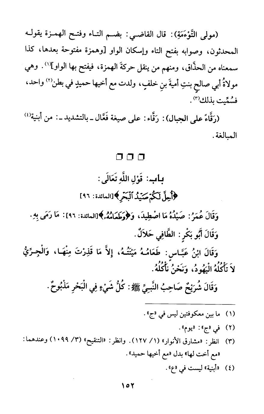 باب: قَوْلِ اللَّهِ تَعَالَى: {أُحِلَّ لَكُمْ صَيْدُ الْبَحْرِ} [المائدة: 96]